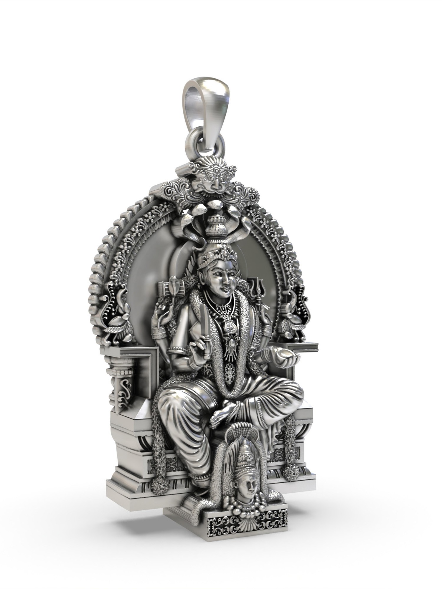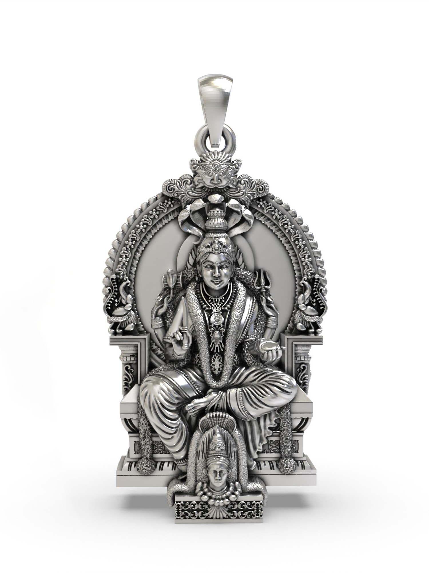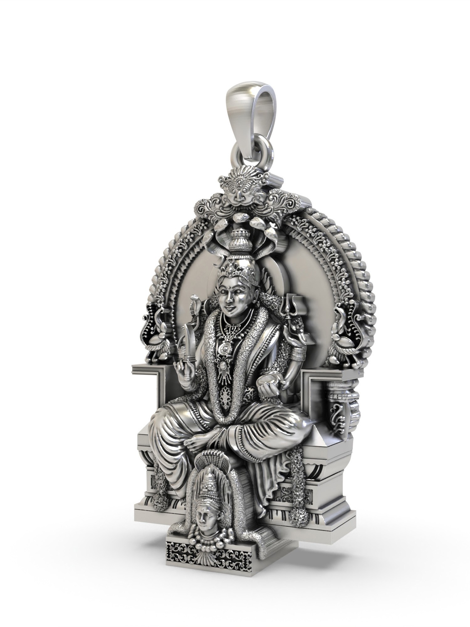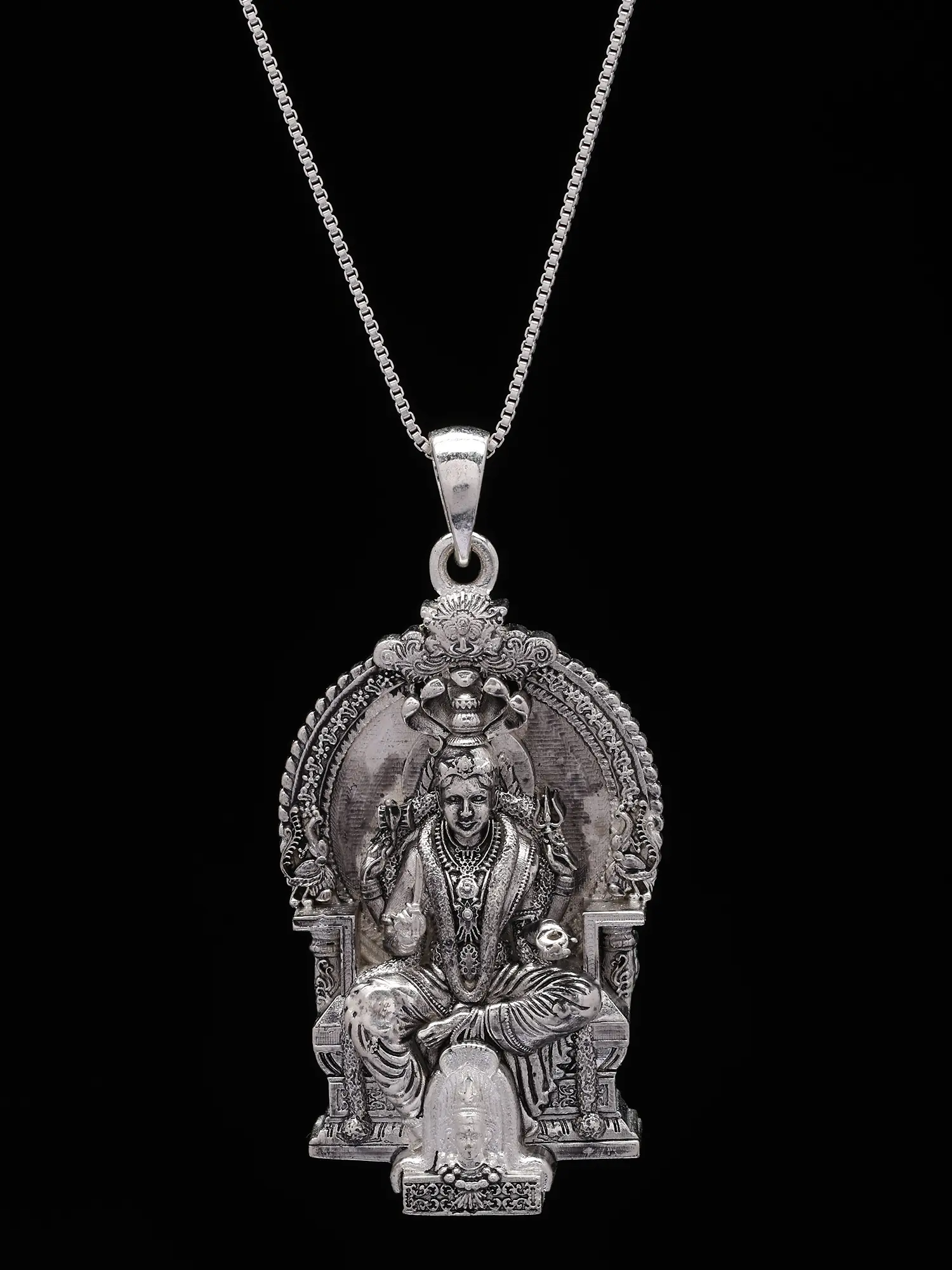 This exquisitely crafted pendant presents a captivating representation of a revered deity. Cast in fine sterling silver, the piece showcases intricate detailing, bringing the divine form to life with stunning clarity. From the serene expression to the ornate adornments, every element is meticulously rendered, reflecting the skill and dedication of the artisan. The pendant features a traditional depiction of the deity seated upon a pedestal. The flowing lines of her garments, the intricate details of her jewelry, and the symbolic objects held in her hands are all rendered with precision. The overall effect is one of grace, power, and profound spirituality.