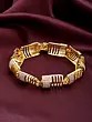 The captivating ribbed design panels create a unique visual rhythm, catching the light from every angle and casting an enchanting play of shadows. This architectural detailing, paired with the sparkle of the meticulously placed American diamonds, forms a truly arresting statement. At a graceful 0.4 inches in width and a comfortable 7.5 inches in length, it rests perfectly on the wrist, a substantial yet refined accent.
