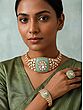 Adorned with numerous clear polki stones and a delicate red accent stone.