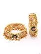 Green Kundan Stone Openable Bangles with Ghungroo Drops (Pair)