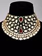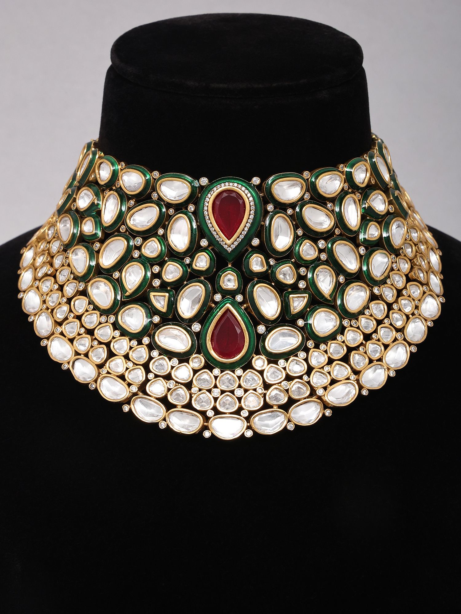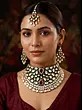 Exquisite bridal necklace set featuring vibrant green Meenakari work and sparkling Kundan stones.