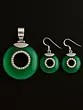 The appeal of this jewelry set is further enhanced by the inherent beauty of green onyx. Each stone is unique, possessing its own subtle variations in color and clarity, a testament to its natural origins. This ensures that your set is truly one-of-a-kind. The smooth, polished finish of the onyx not only feels pleasant against the skin but also allows the light to play across its surface, revealing its depth and luminosity. Combined with the cool, lustrous gleam of sterling silver, this set creates a harmonious balance of textures and colors that is both eye-catching and sophisticated. It’s a piece that embodies elegance and natural charm, making it a treasured addition to any jewelry lover's collection.