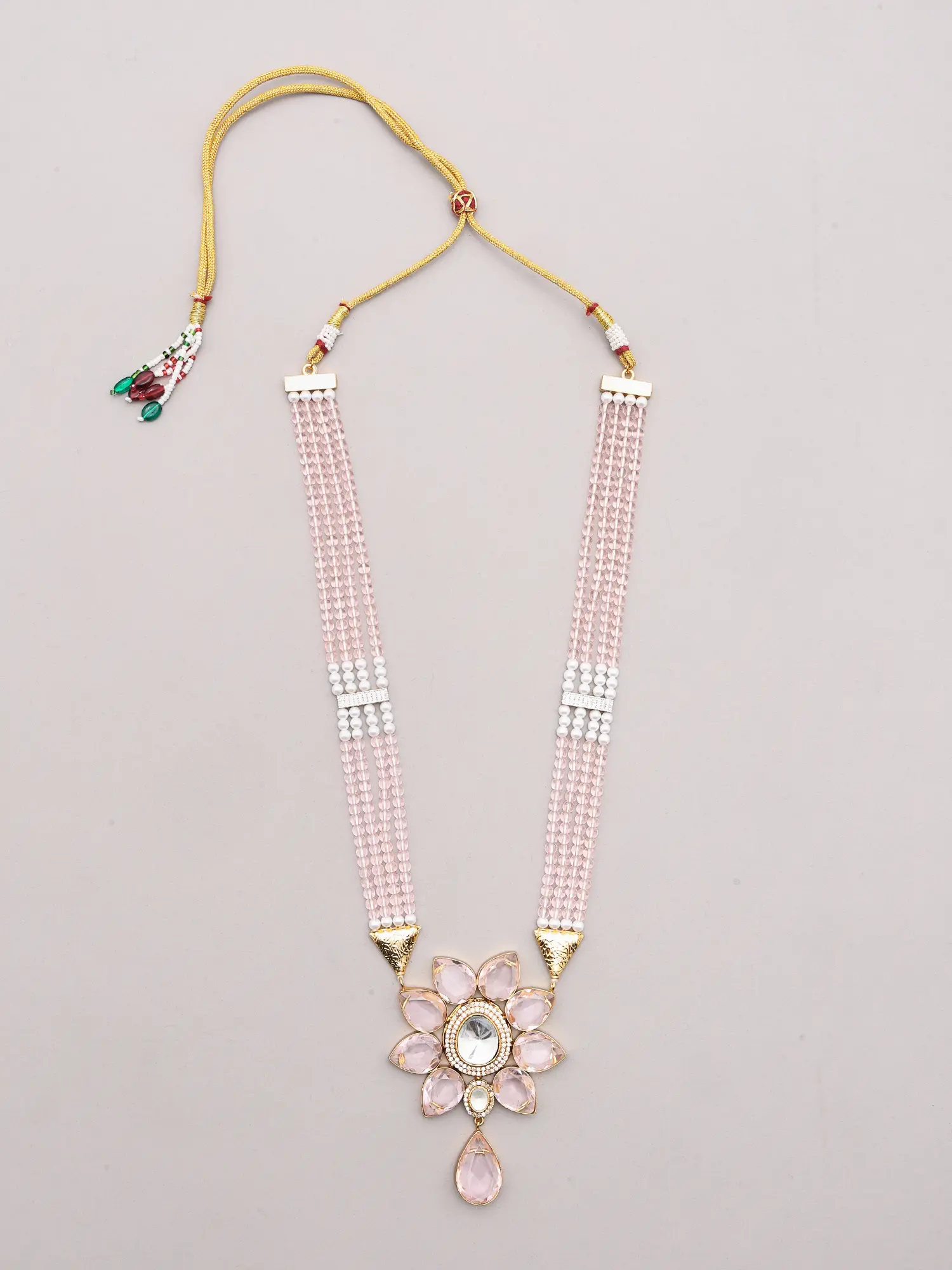 Gulnaar Blush Floral Kundan Necklace Set with Earrings