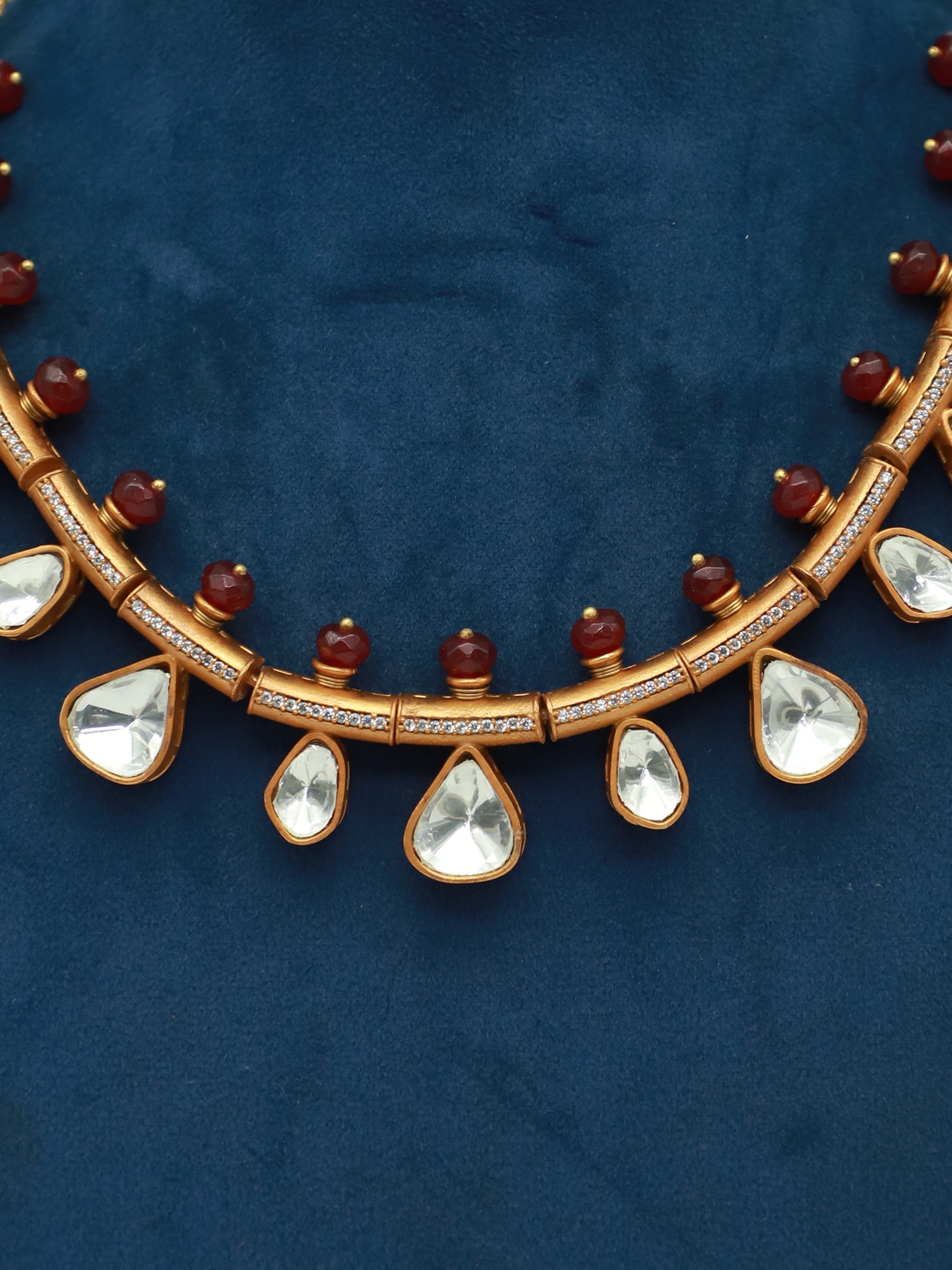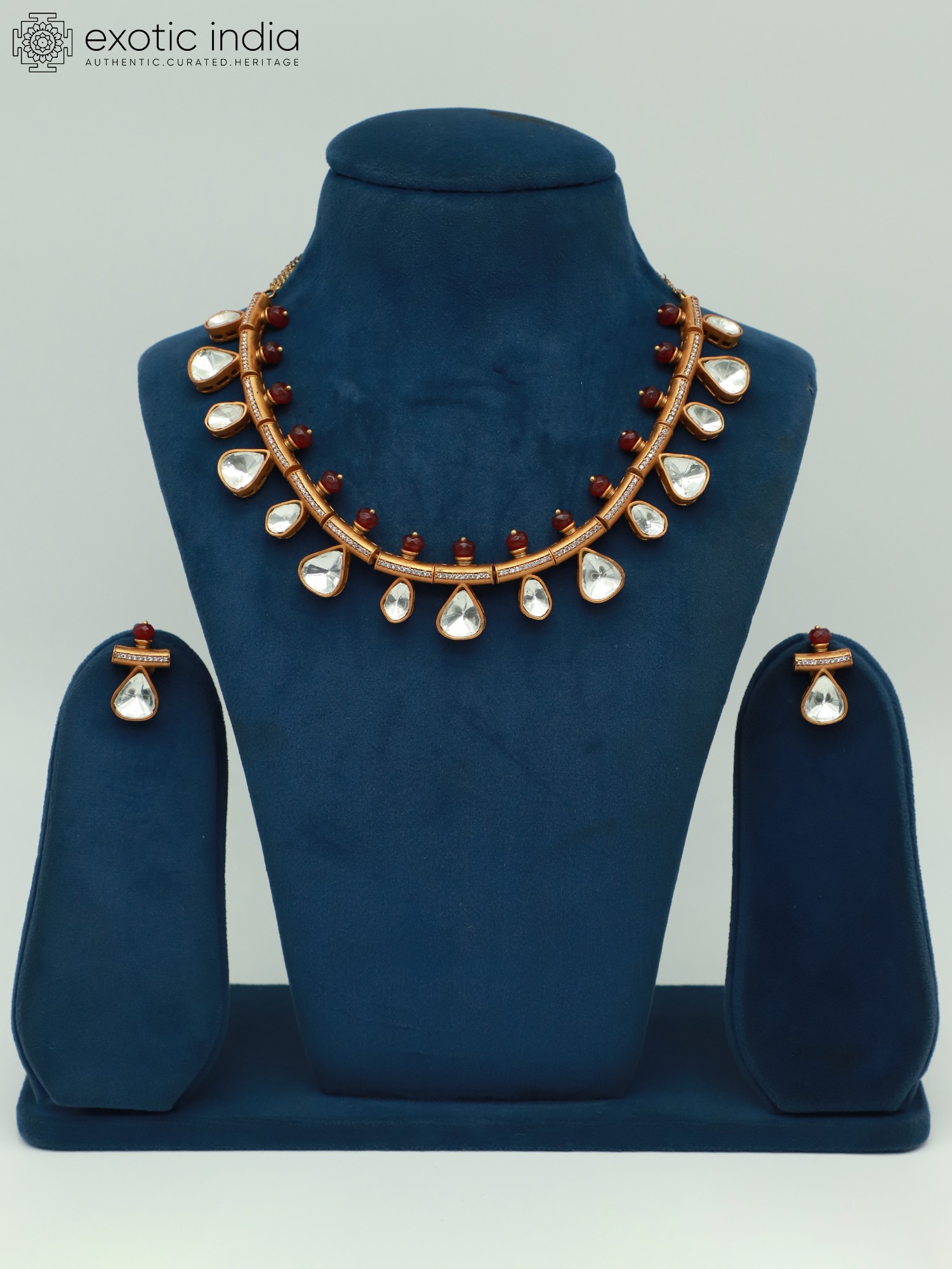 Traditional Rajputi Style Multicolored Choker Necklace with Dangling Drops and Earrings
