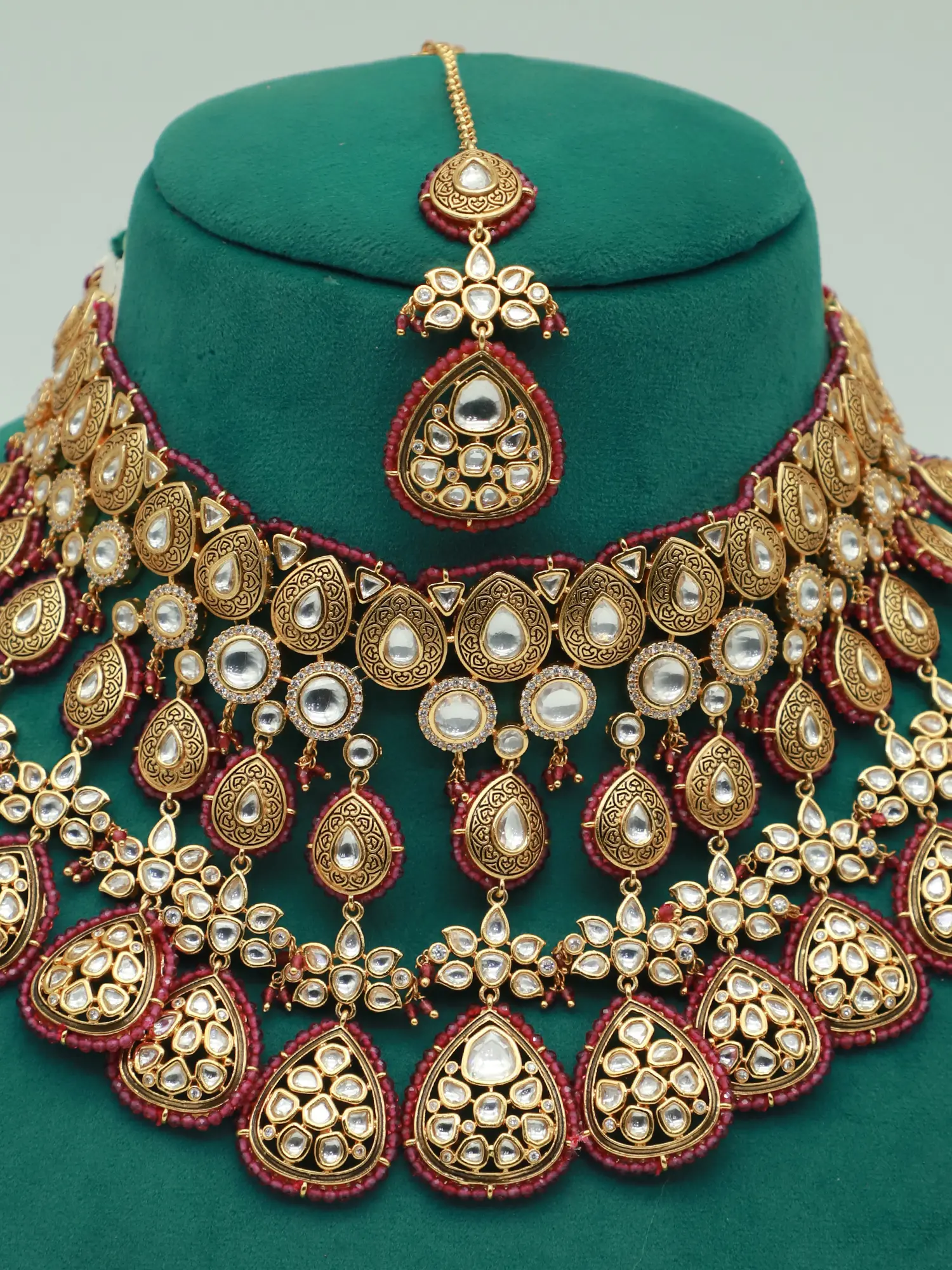 NECKLACE : 19 INCH LENGTH X 7.5 INCH WIDTH EARRINGS : 2.8 INCH HEIGHT X 1.5 INCH WIDTH Mangtika -5.5 Inch Length
