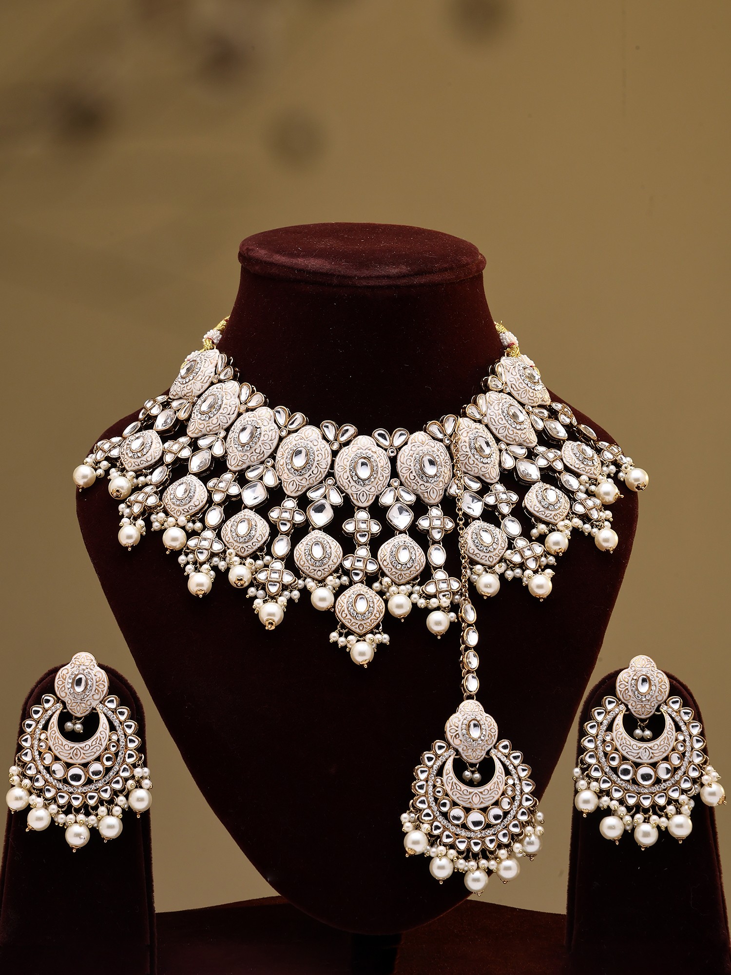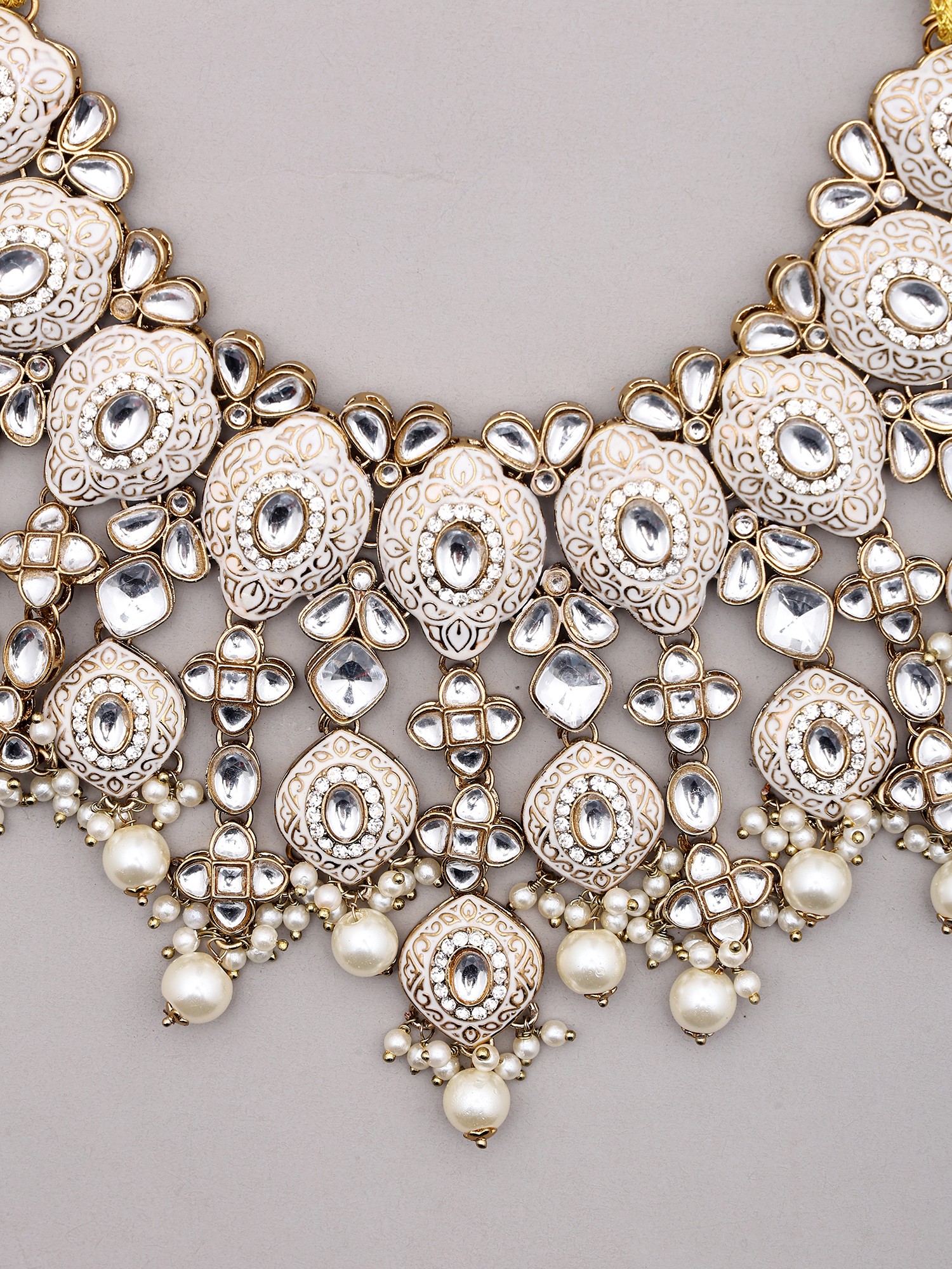 Victoria Polish Stone Studded Necklace Set With Earrings | Indian Fashion Jewelry