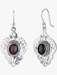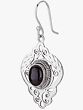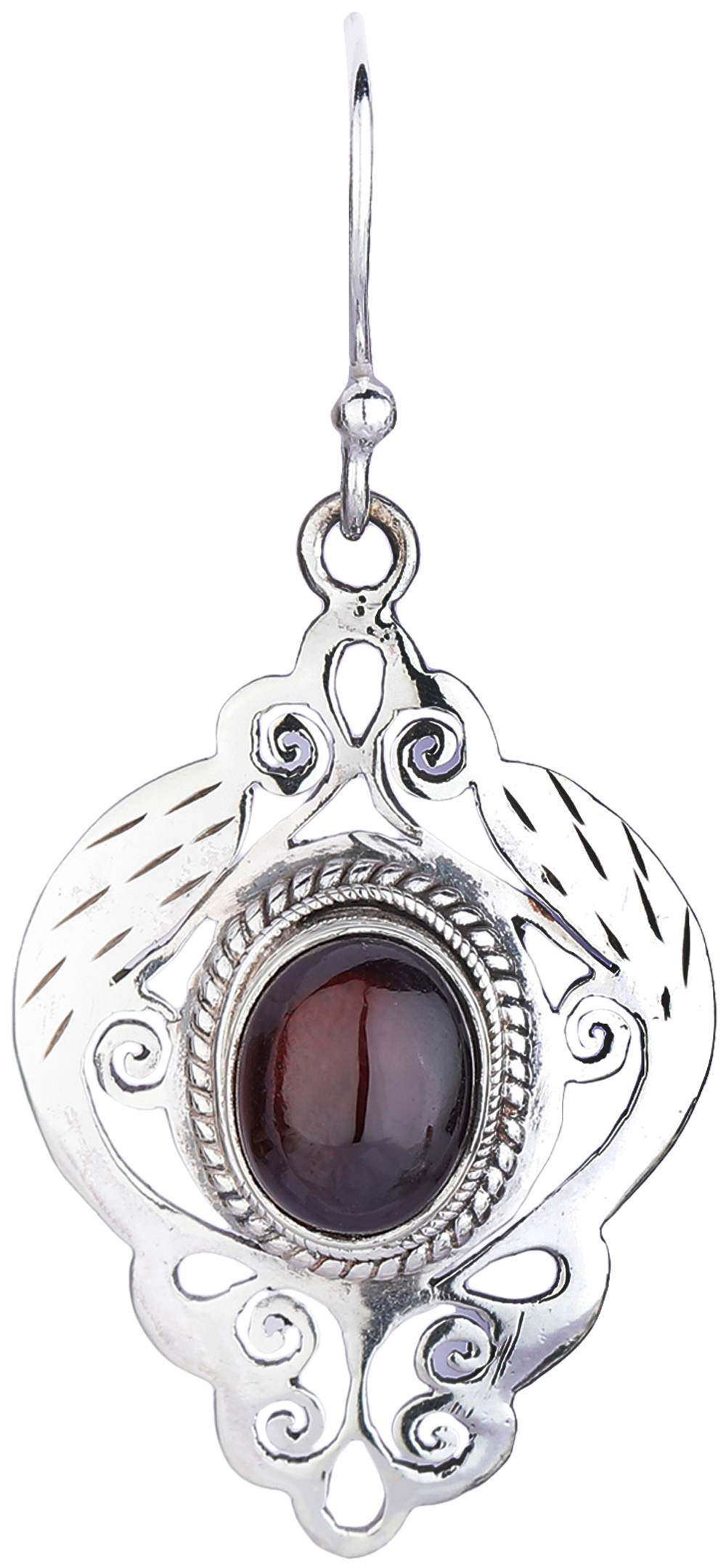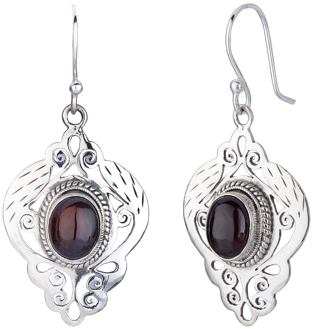 Discover a pair of earrings that embody sophistication and artisanal craftsmanship. These exquisite drop earrings are meticulously crafted from genuine sterling silver, offering a luminous sheen that complements any skin tone. Each earring features a captivating, deep red garnet, renowned for its rich color and symbolic association with passion and vitality. The oval-cut garnet is expertly set within an ornate sterling silver frame, evoking a sense of antique charm and intricate detail.