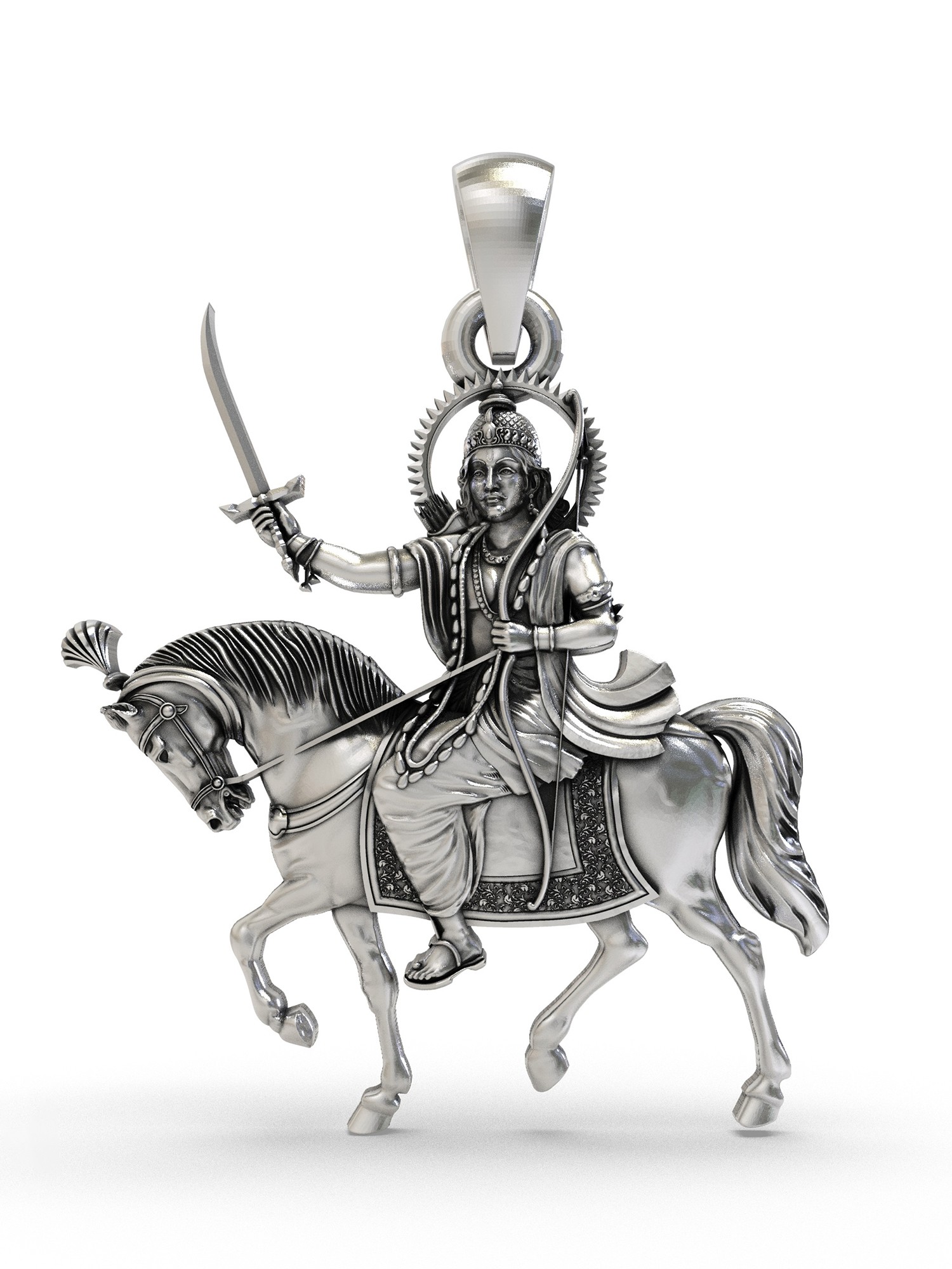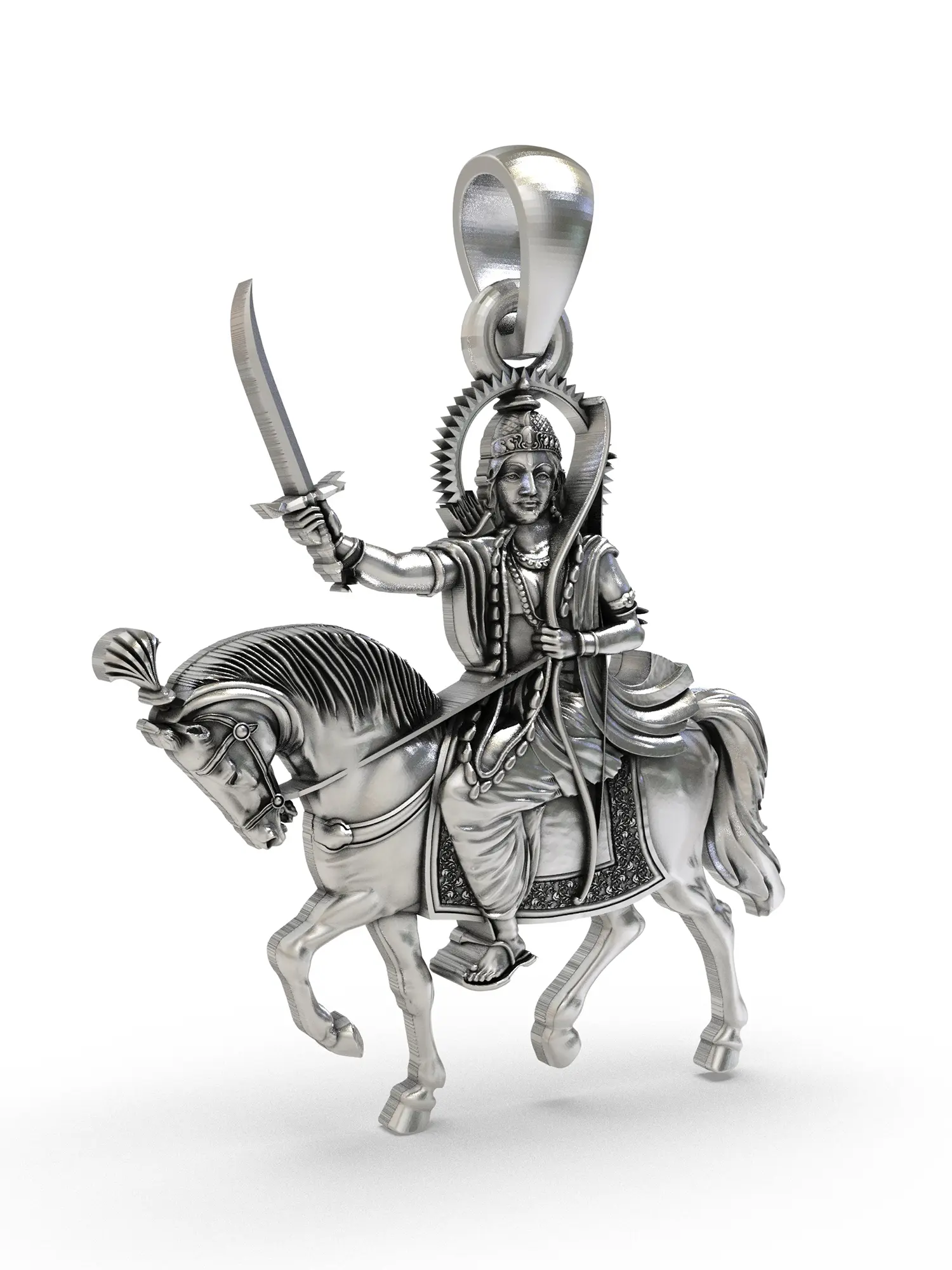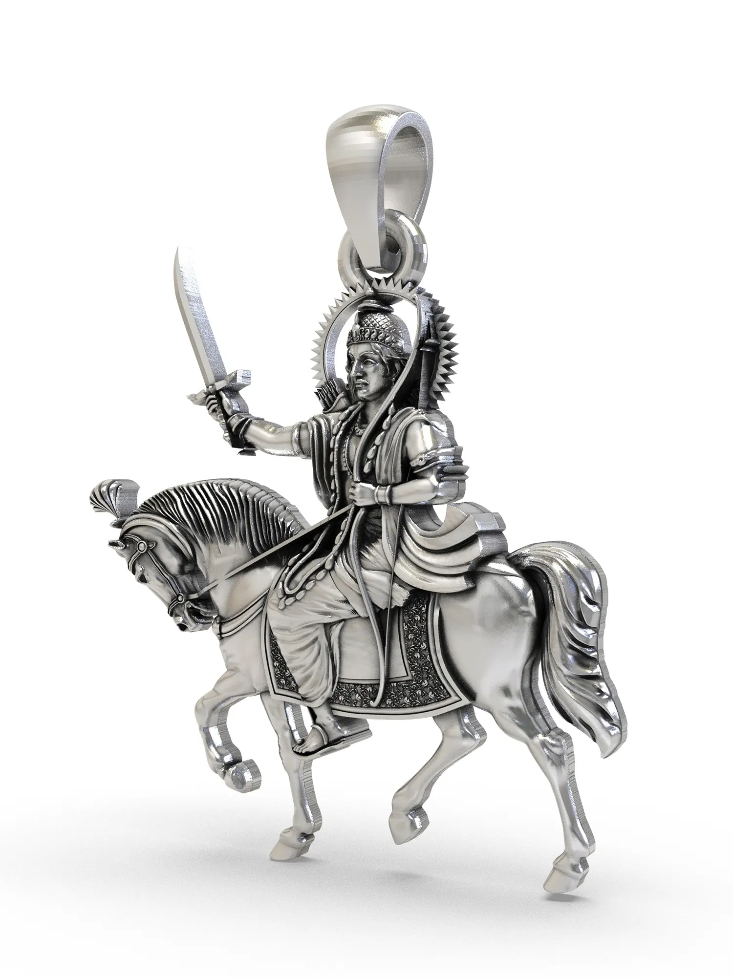 Ramdev Pir Baba Enamel Sterling Silver Pendant