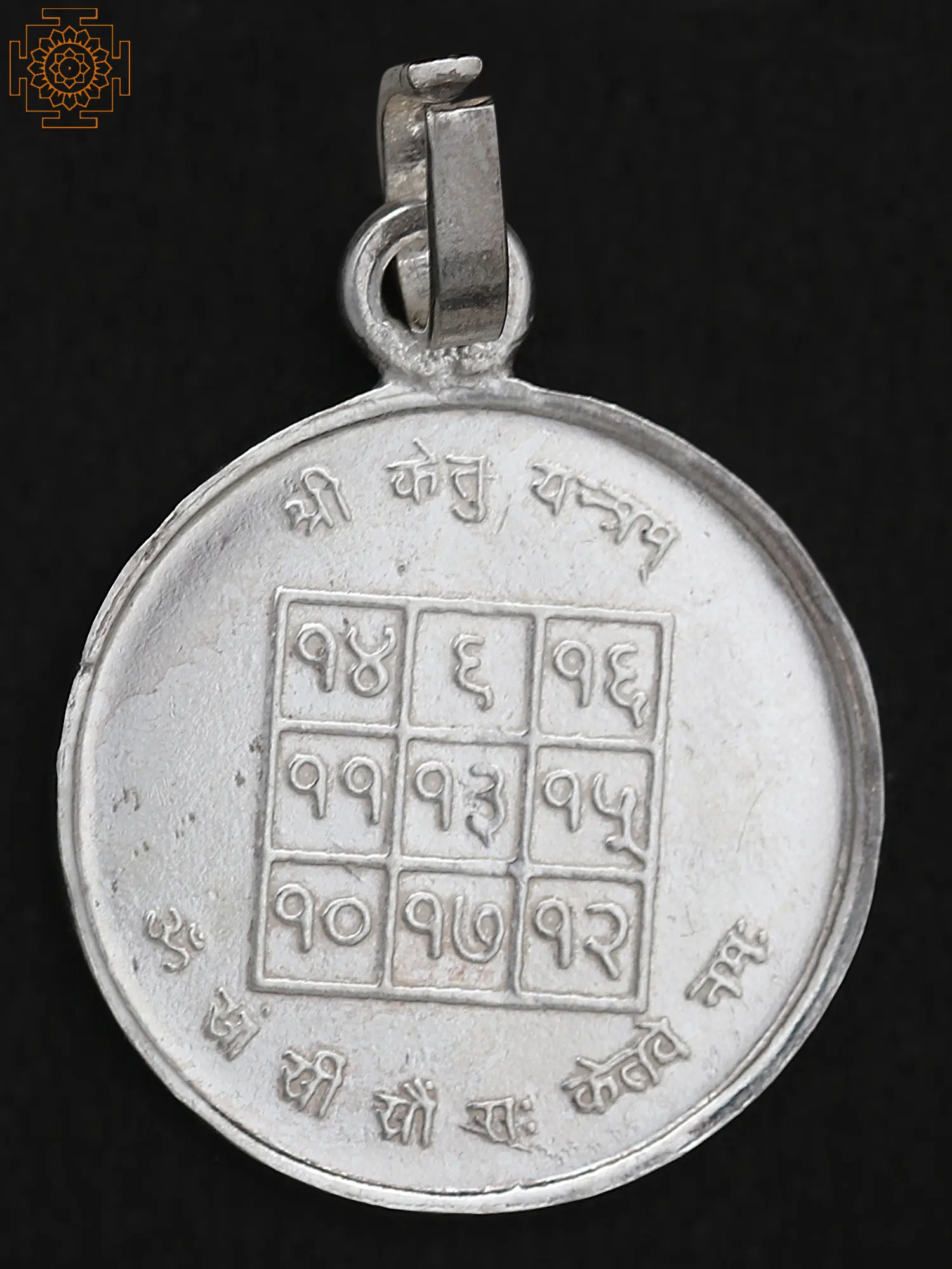 Planet Ketu is considered to be the patron of Karmic repercussions and is also believed to be providing spiritual guidance to people. The movement of Ketu can cause maleficent effects on the lives of some individuals. To avoid these effects people are advised to take refuge in the Ketu Yantra. This silver pendant carries a Ketu Yantra on the reverse side. The Ketu Yantra brings financial and personal prosperity, professional growth, triumph over foes, and excellent health. This Ketu Yantra pendant is a holy geometric emblem symbolizing the planet Ketu in Vedic astrology.