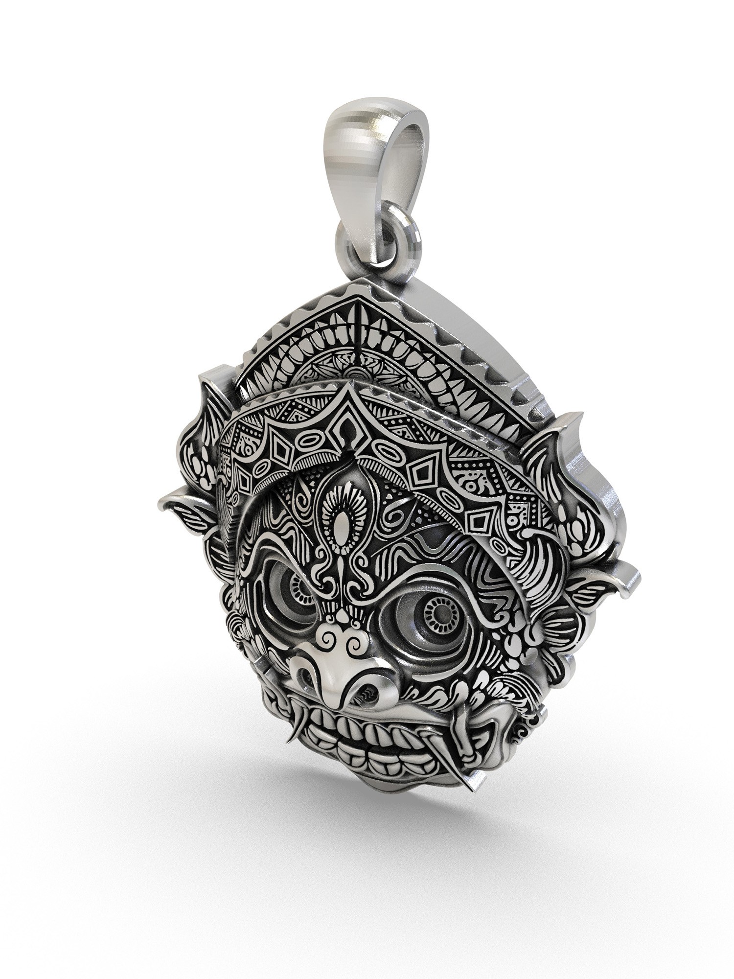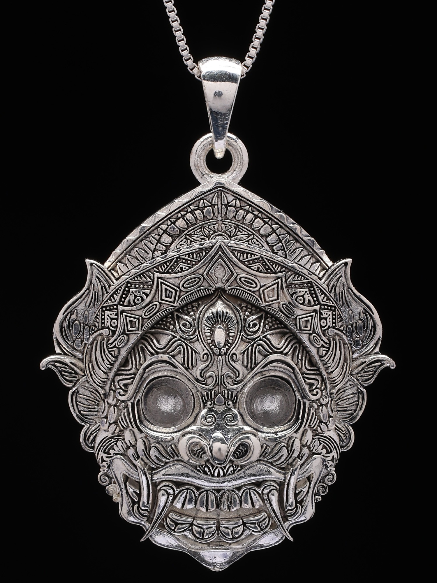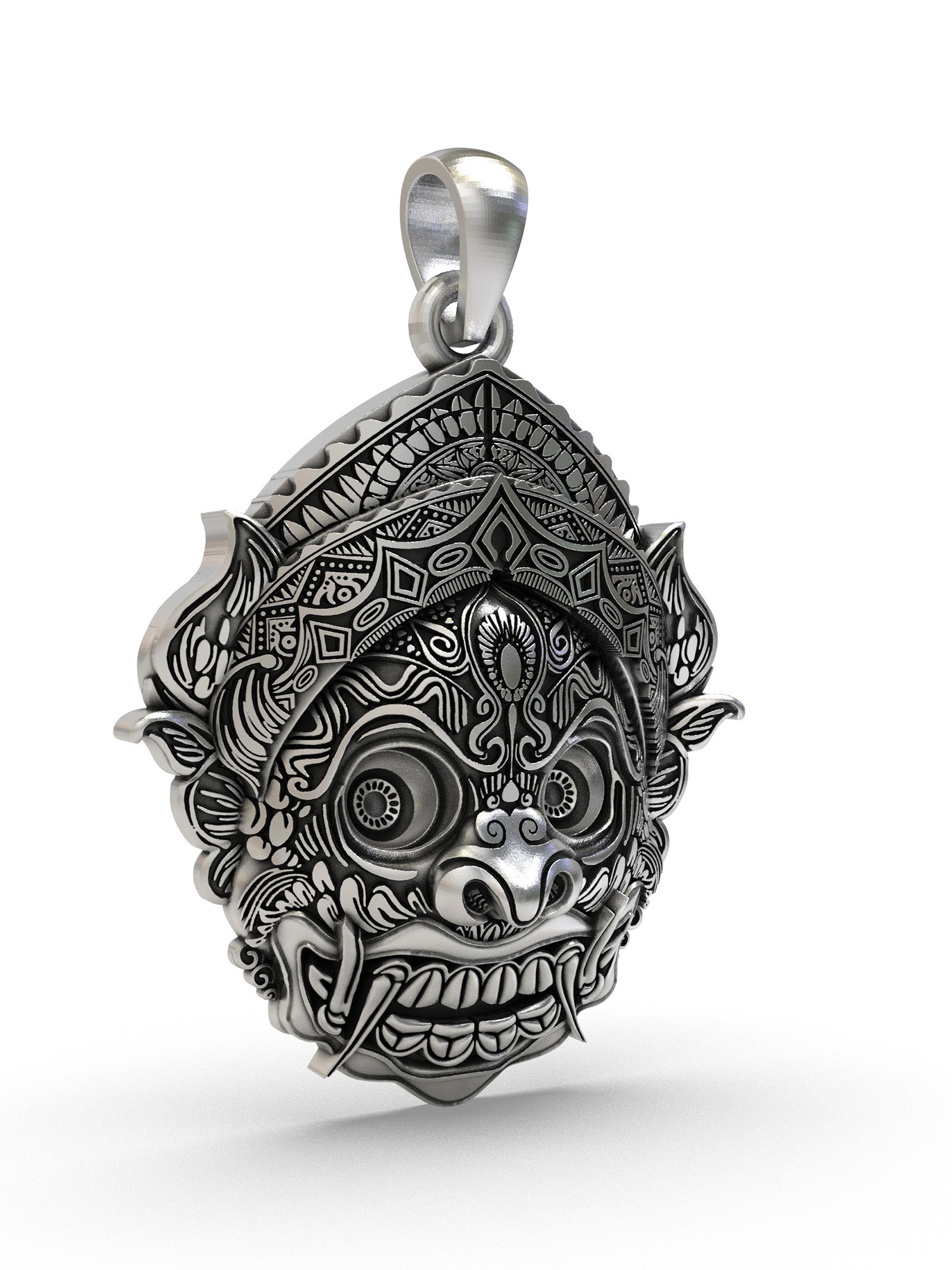 This unique pendant features the formidable Kirtimukha, a symbol rich in mythology and artistry. The intricate detailing, brought to life in shimmering sterling silver, captures the essence of this powerful figure. Wear it as a bold statement piece or as a meaningful representation of protection and strength.