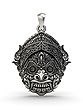 Every curve and line of this pendant has been meticulously crafted. The sterling silver medium allows for the fine detailing to truly shine, from the elaborate patterns adorning the crown to the fiercely expressive features of the Kirtimukha. The depth and texture add a tactile quality, making it a pleasure to wear and admire. The design showcases a captivating balance between ornate embellishment and the striking simplicity of the central image.