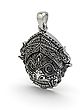 This pendant has a height of 1.55 inches and a width of 1.25 inches. It is made of sterling silver, a precious metal known for its lustrous shine and durability.