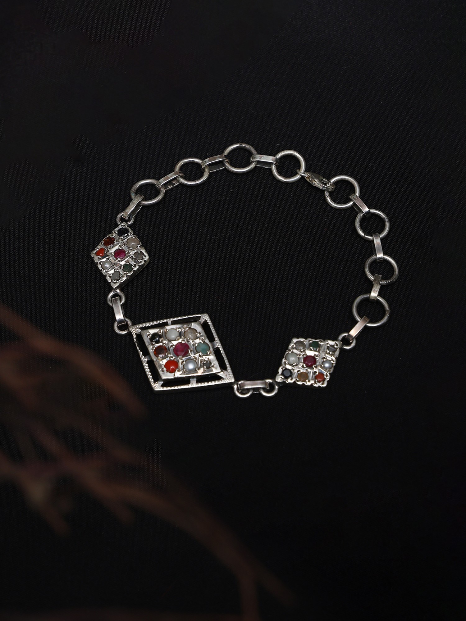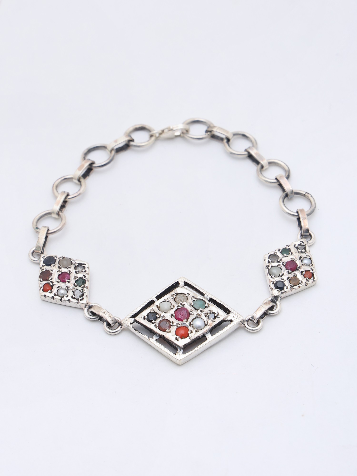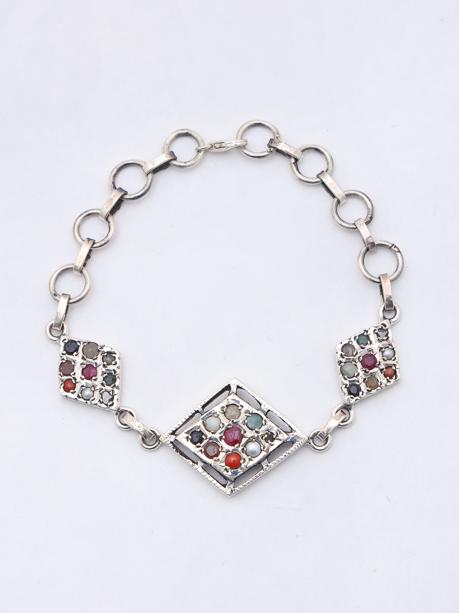 Kite Shape Sterling Silver Bracelet with Navaratna