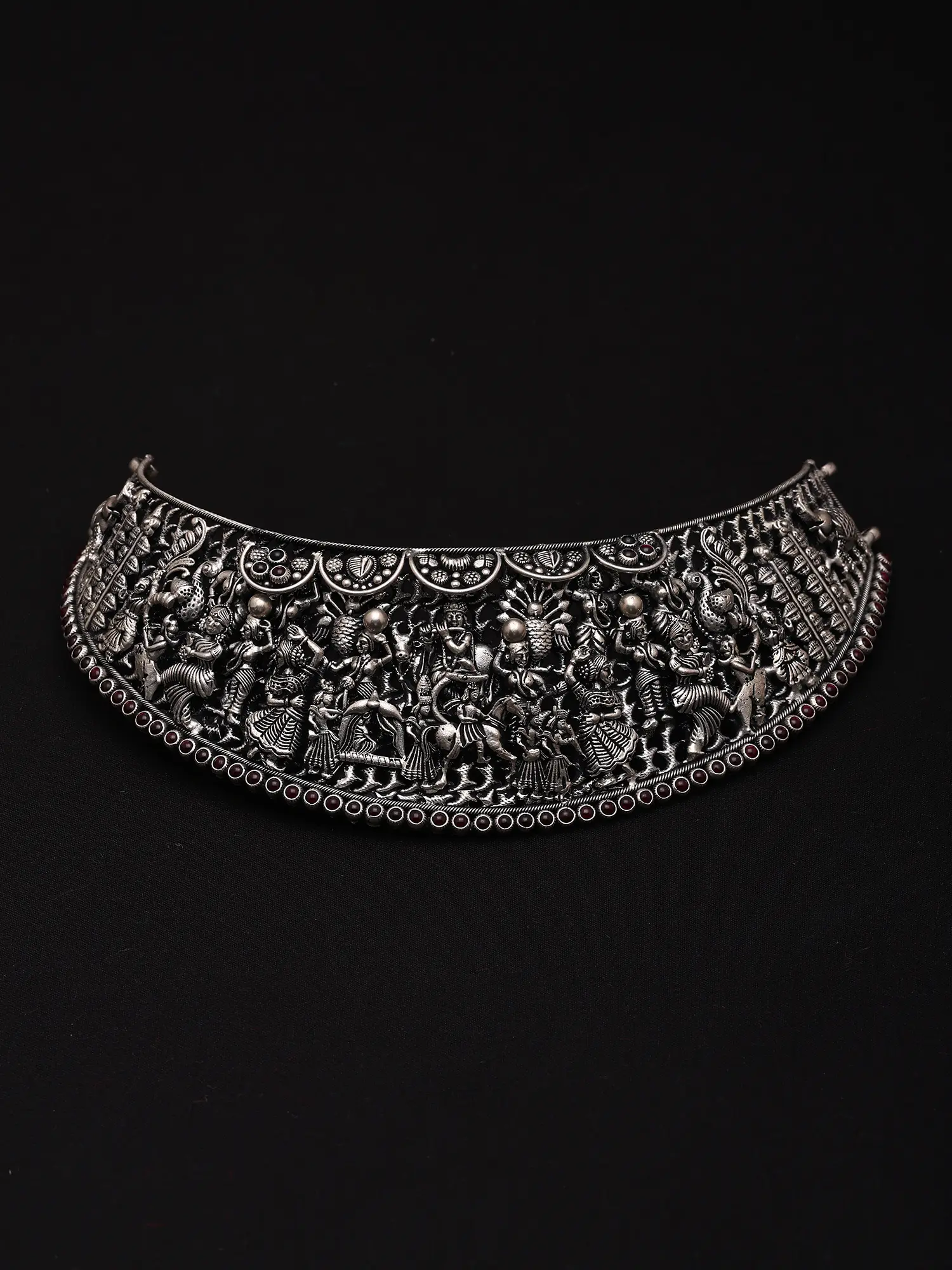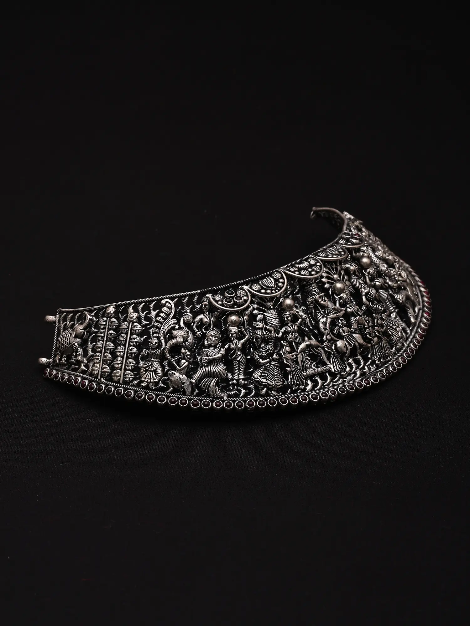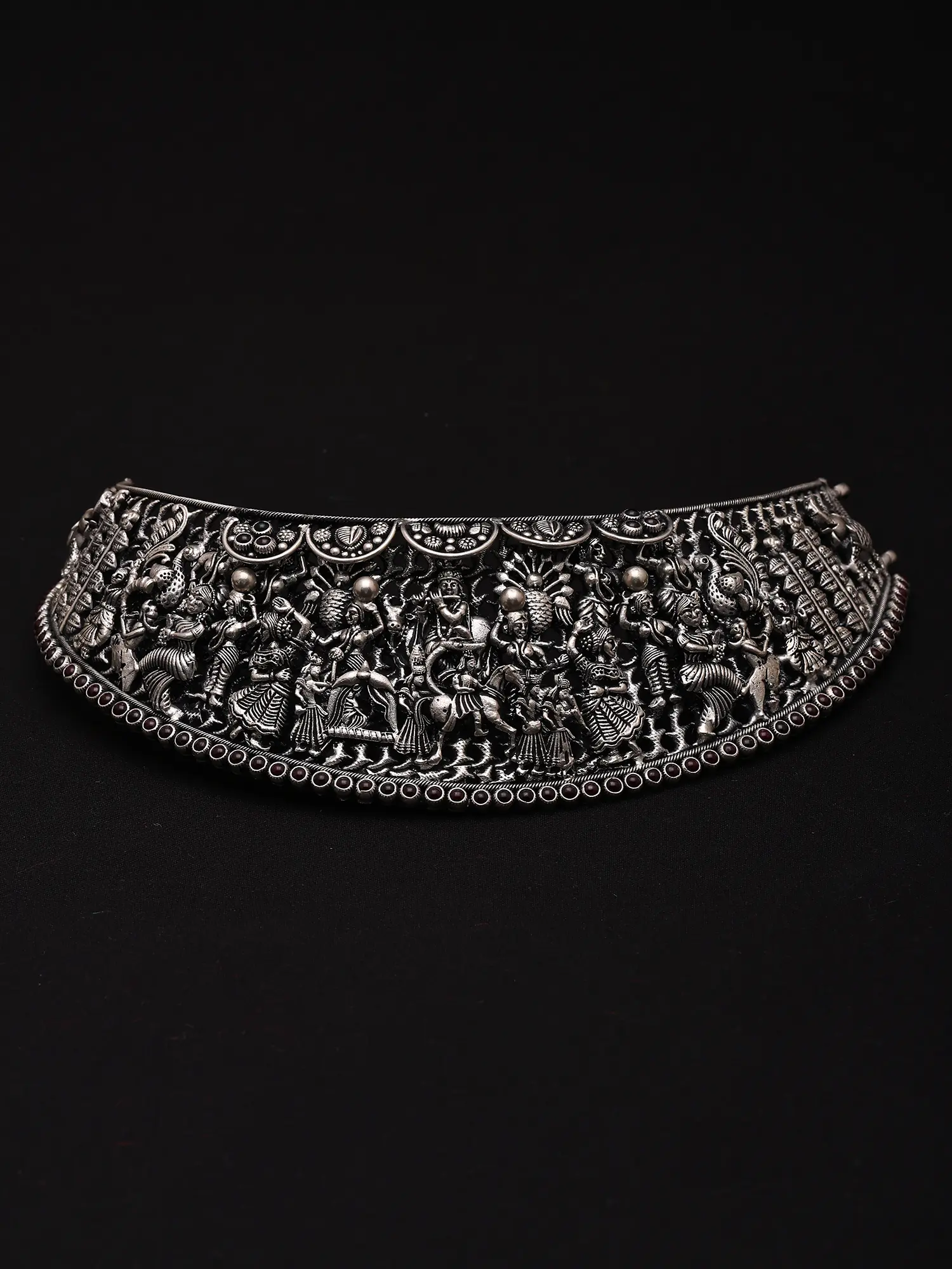 Ethnic Style Metal Choker Necklace | White Metal Jewelry
