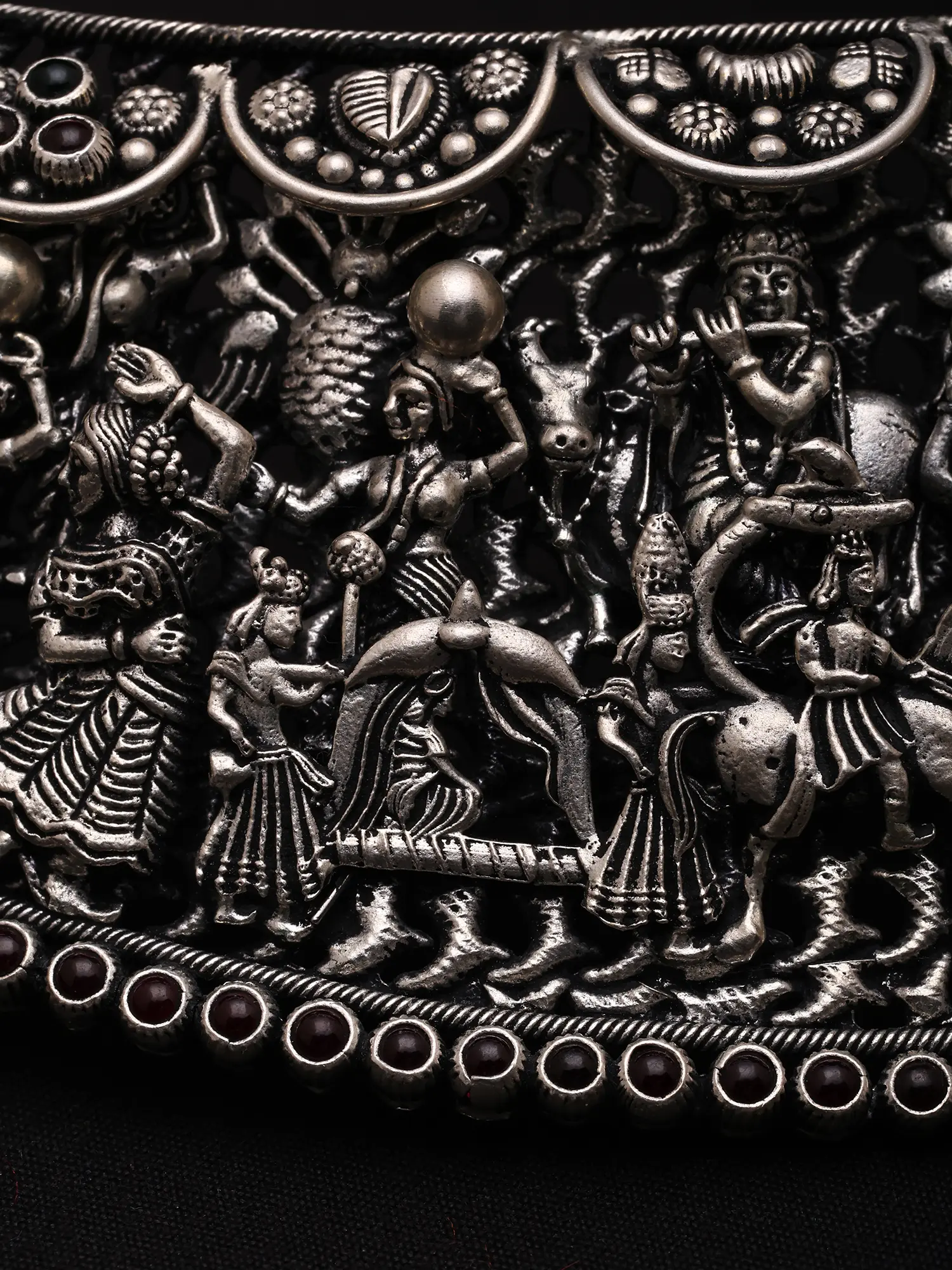 Each element of this striking piece is meticulously handcrafted from the finest sterling silver, a testament to traditional artisanal techniques. The rich, oxidized finish lends a depth and vintage allure, highlighting the incredible detail of the engraved scenes. You'll feel the weight of quality, the smooth, cool touch of metal sculpted with generations of expertise.