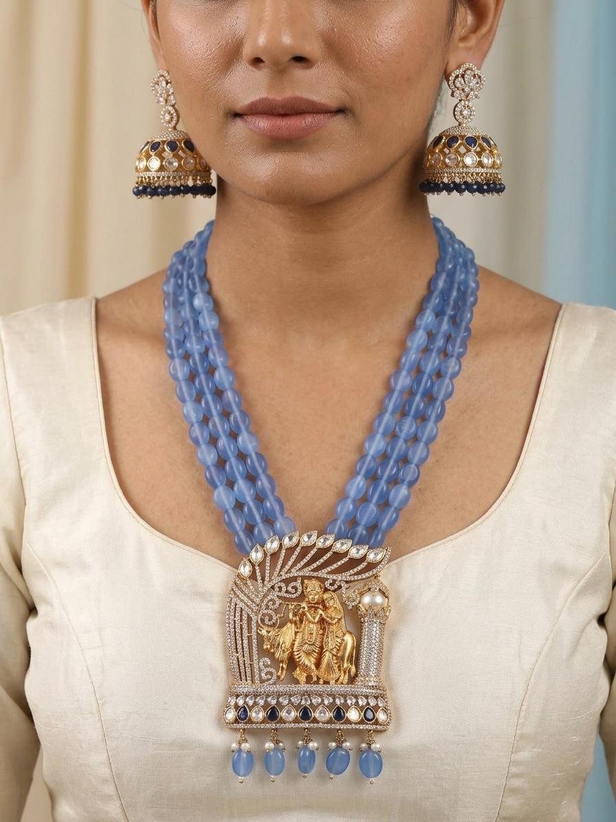 Beaded Multi Strand Long Radha Krishna Necklace and Earring Set