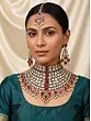 Semi Bridal Necklace Set with Pink Kundan Stones & Earrings