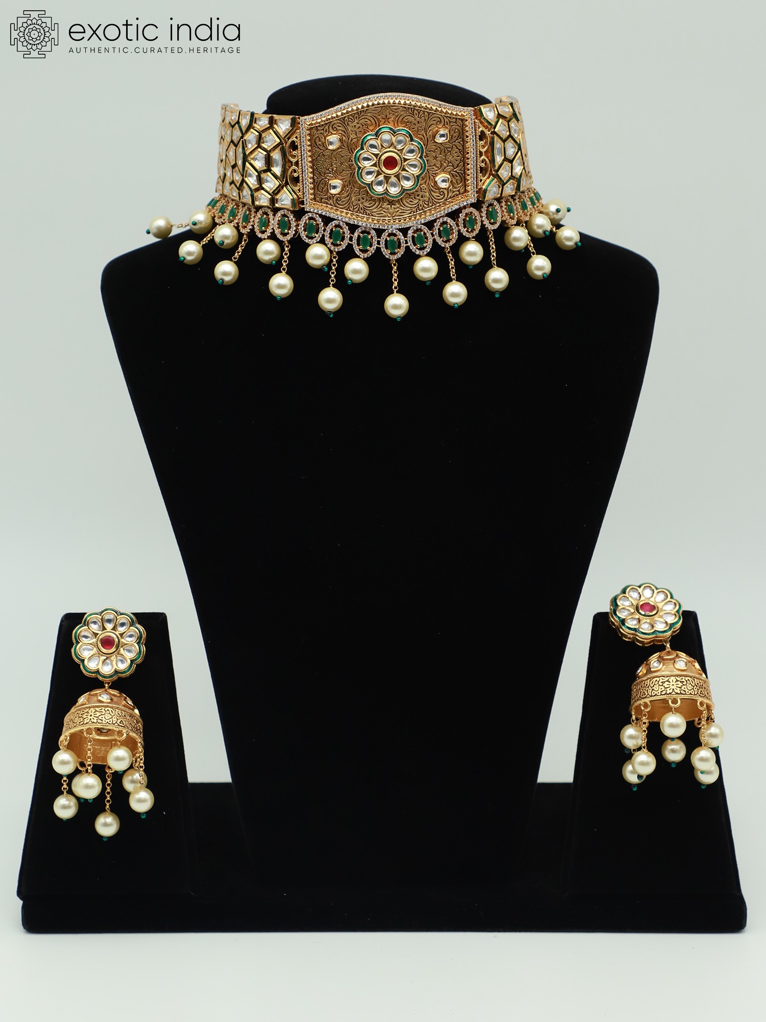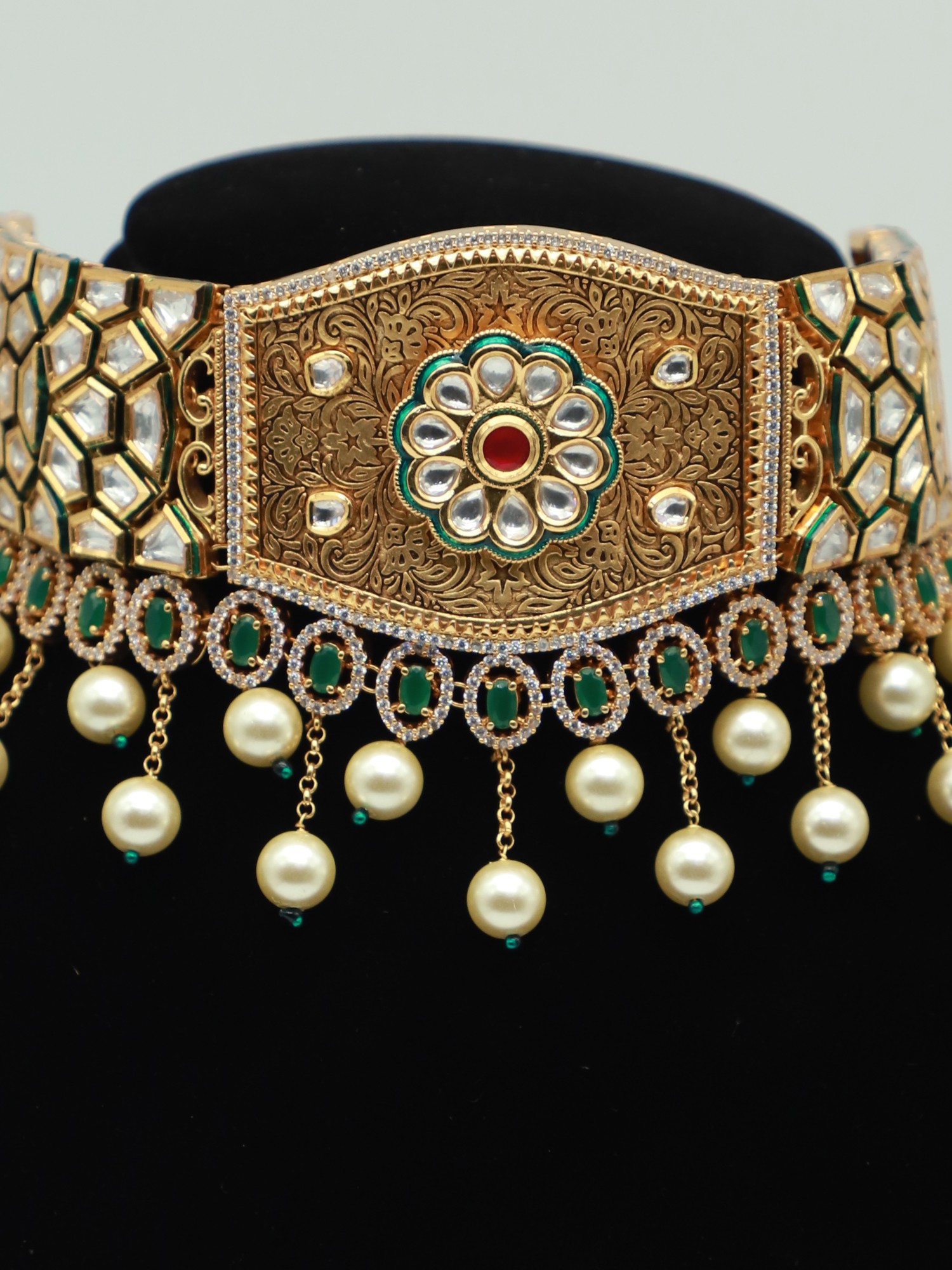 Padmavati Multi Stone Studded Choker Necklace Set with Earrings