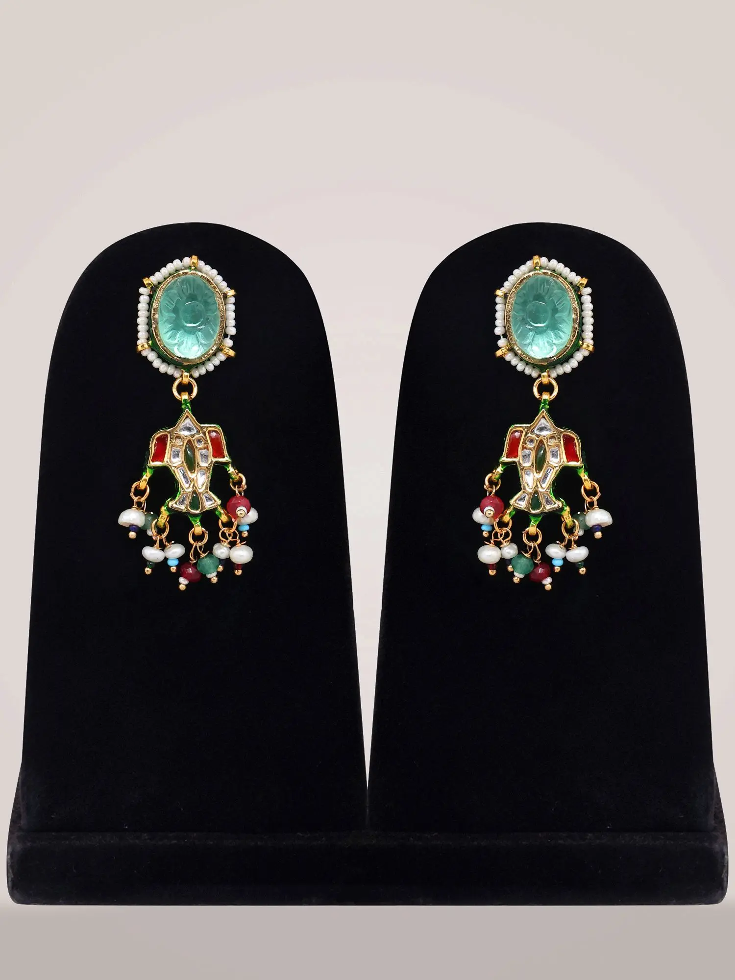 Features authentic Kundan craftsmanship with vibrant lacquer accents.