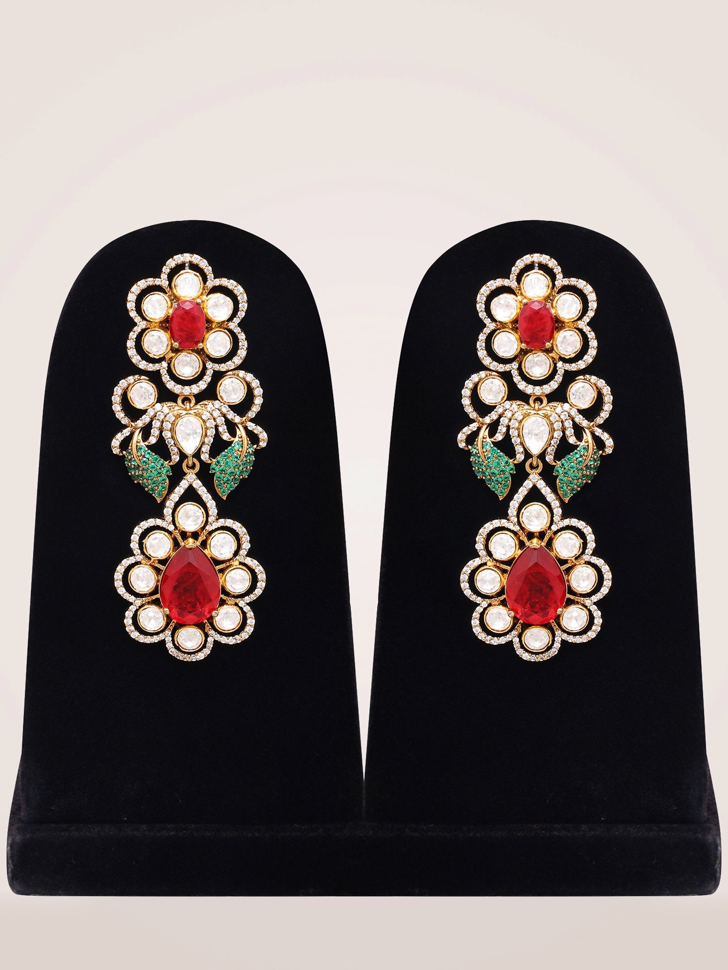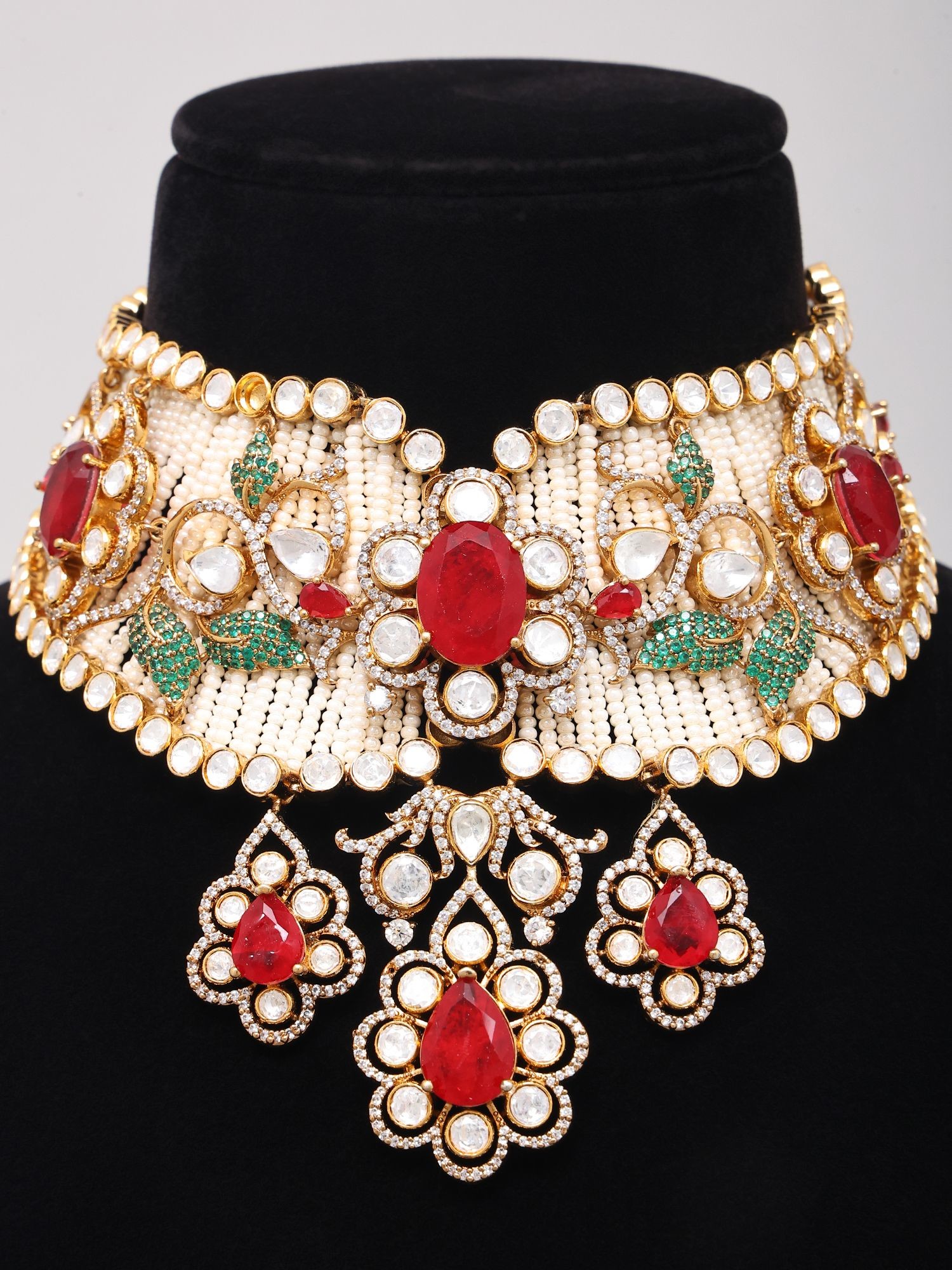 The intricate Kundan work showcases traditional artistry and meticulous detail.