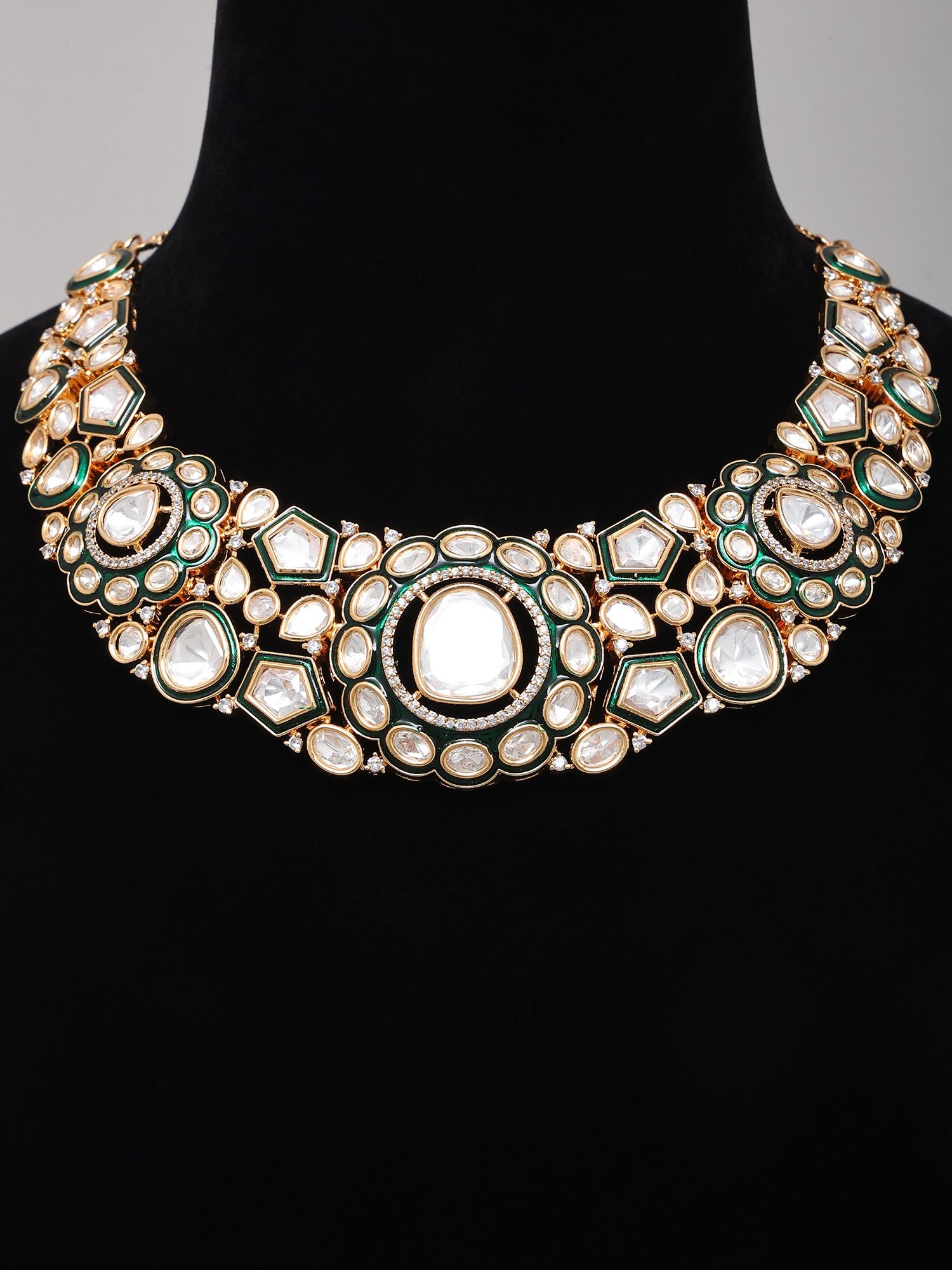 Kundan Polki Necklace Set with Green Enamel Earrings