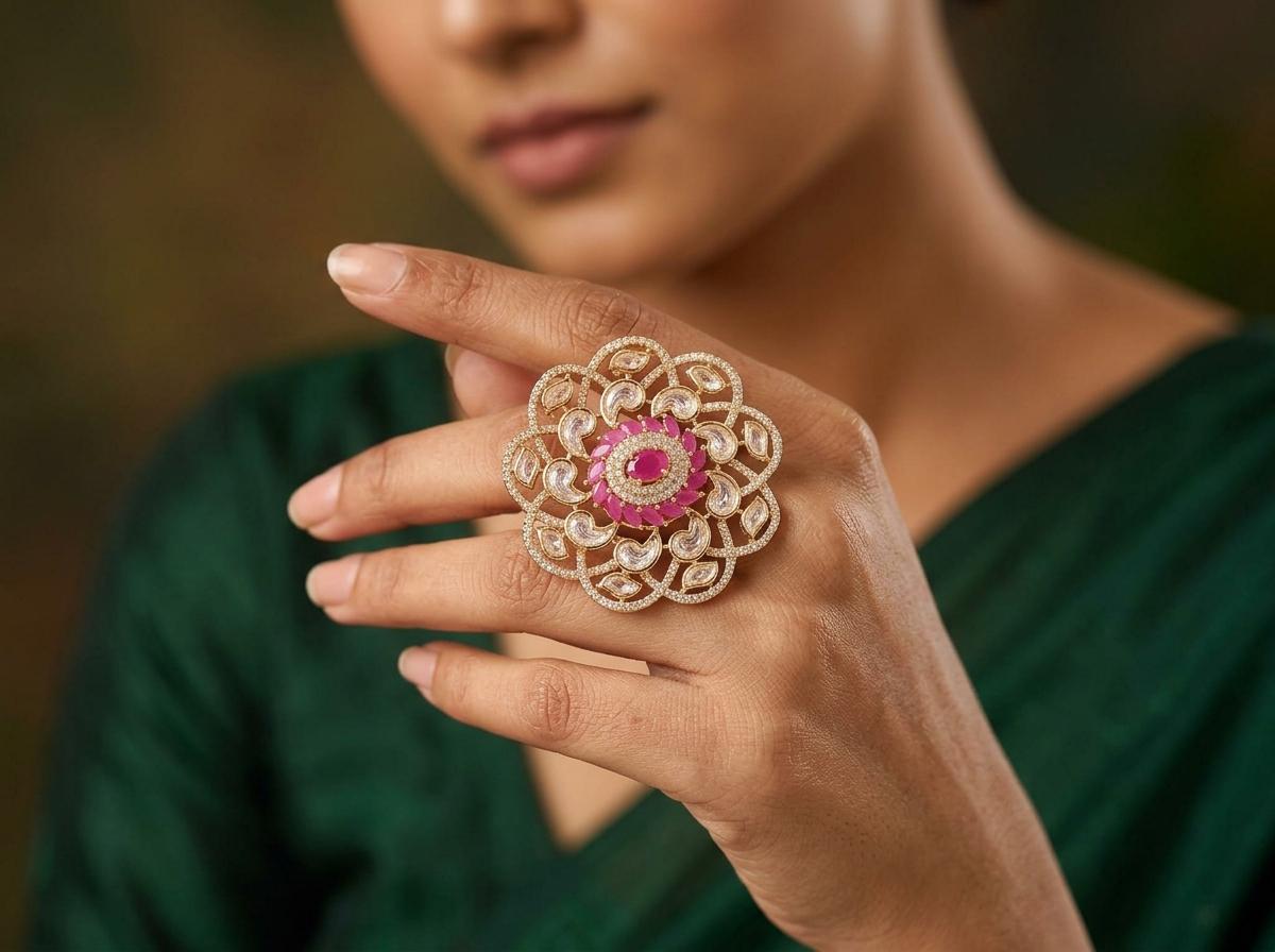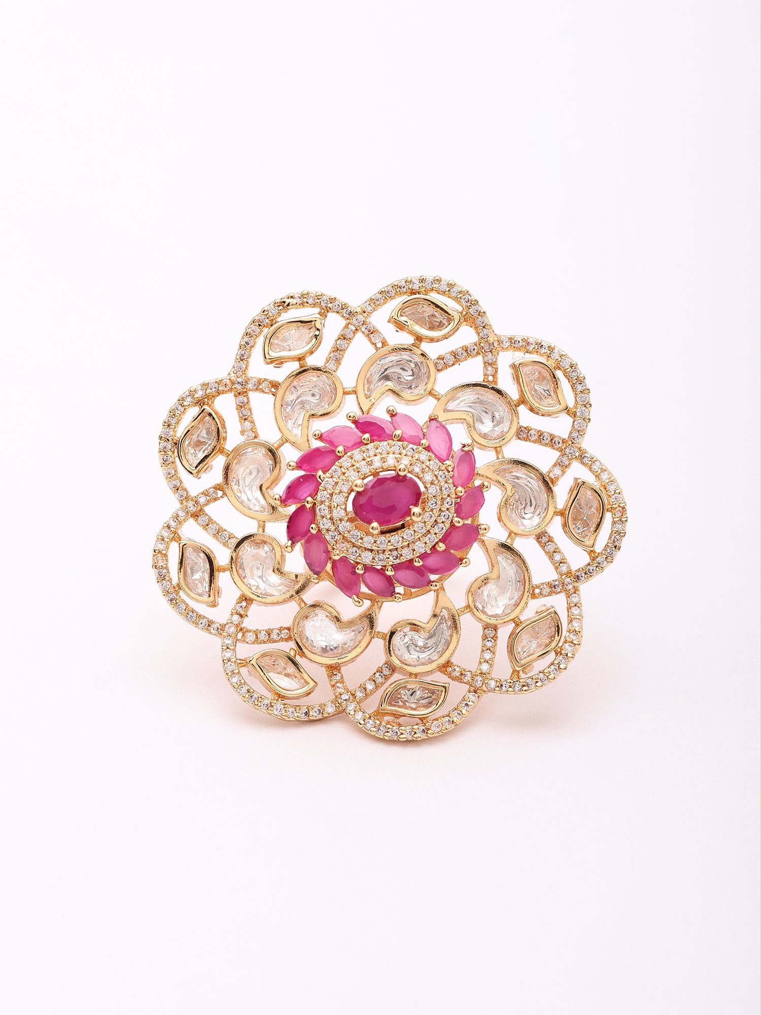 Features a captivating floral design encrusted with sparkling Kundan stones.