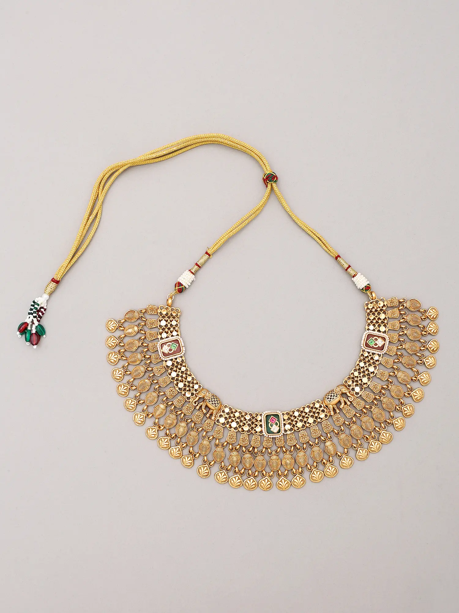 Temple-Style Goddess Lakshmi Multiple Strands Choker Necklace Set