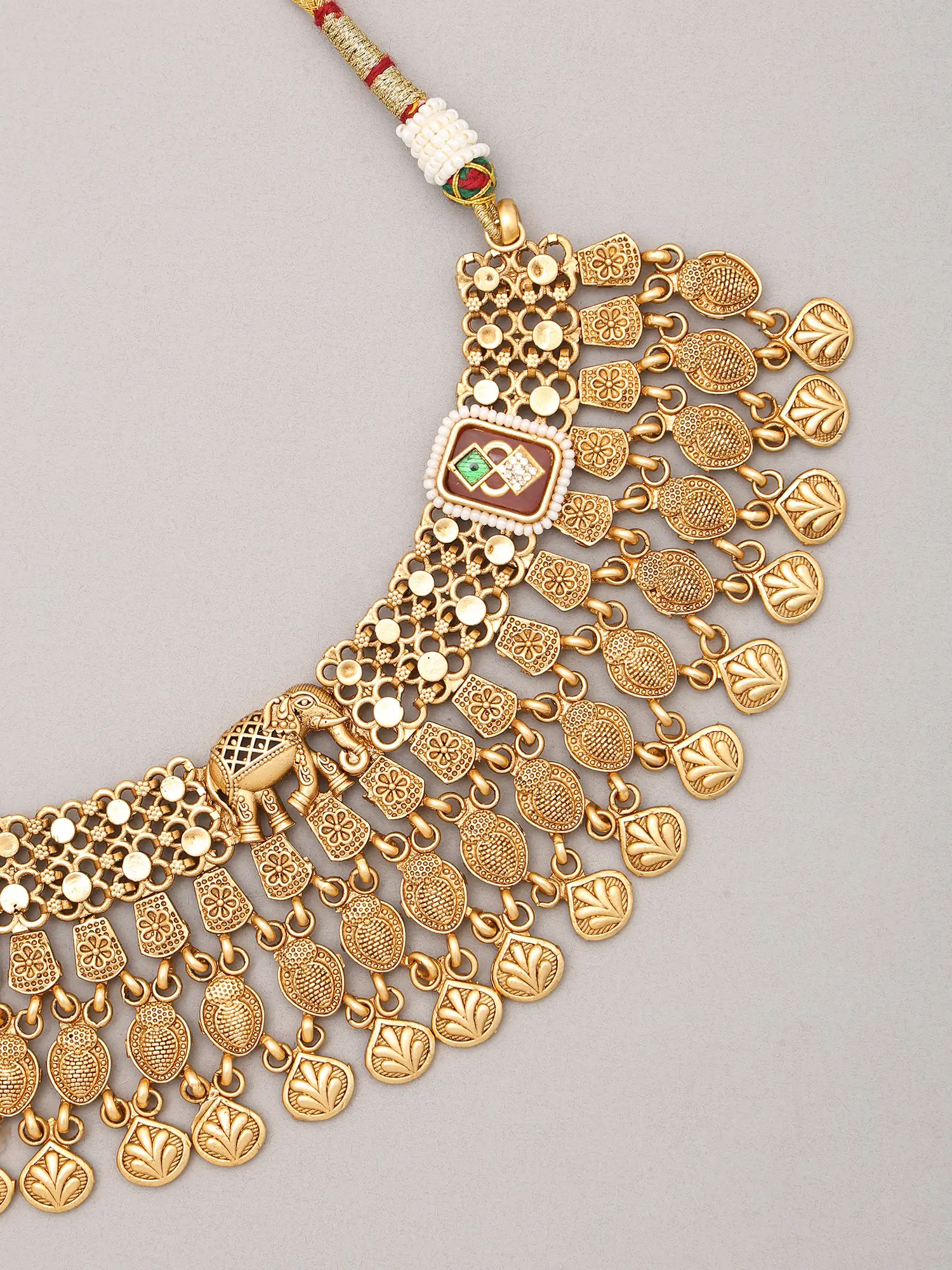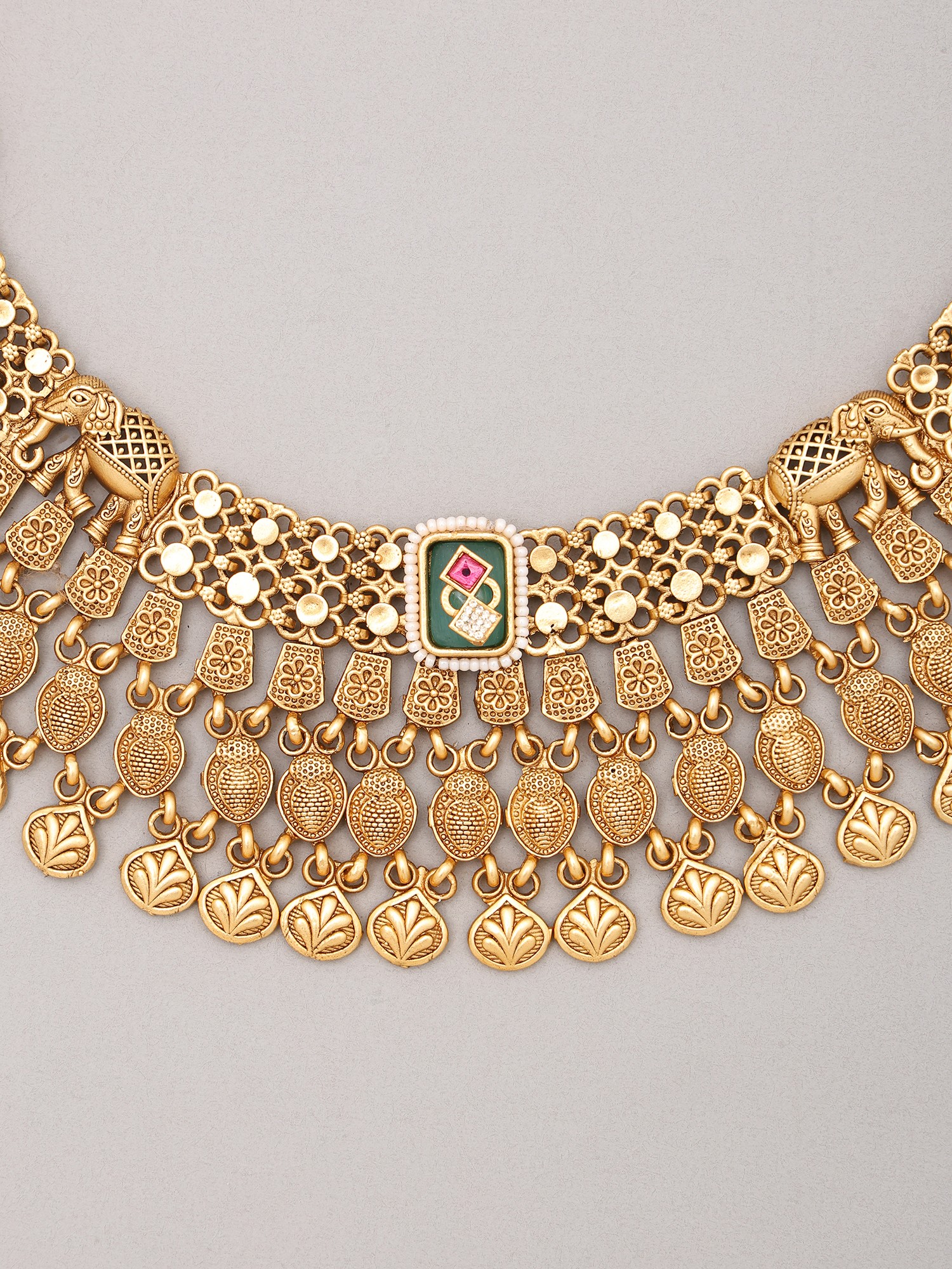 Kundan Stone Studded Elephant Design Necklace Set with Ghungroo Drop