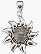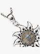 This pendant features labradorite, a stone known for its energy-restorative qualities and is believed to facilitate the self-healing of body and spirit. In metaphysical circles, labradorite is regarded as one of the most potent protective stones. The design of the pendant, with its sun motif, may symbolize the stone's purported life-giving force and protective energy.