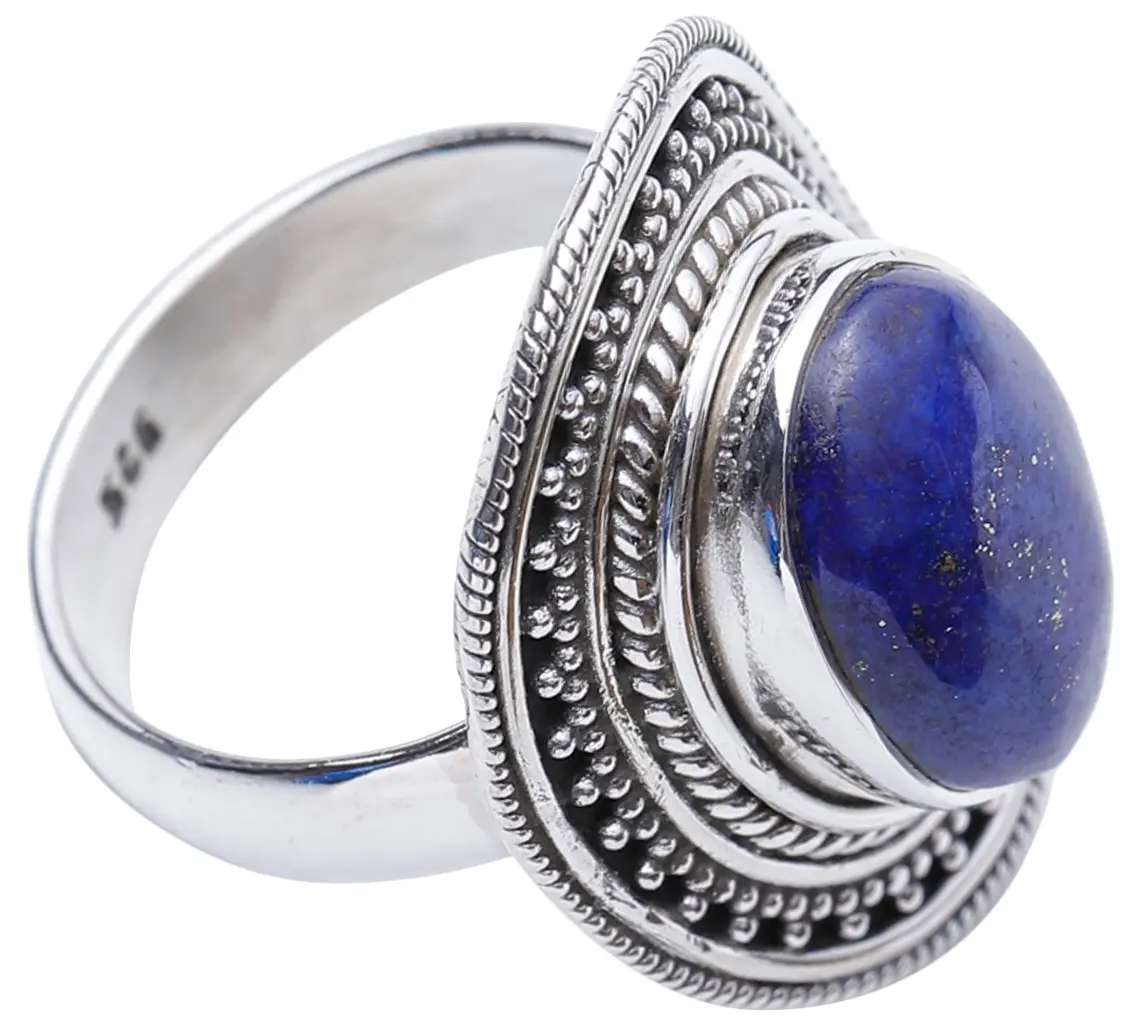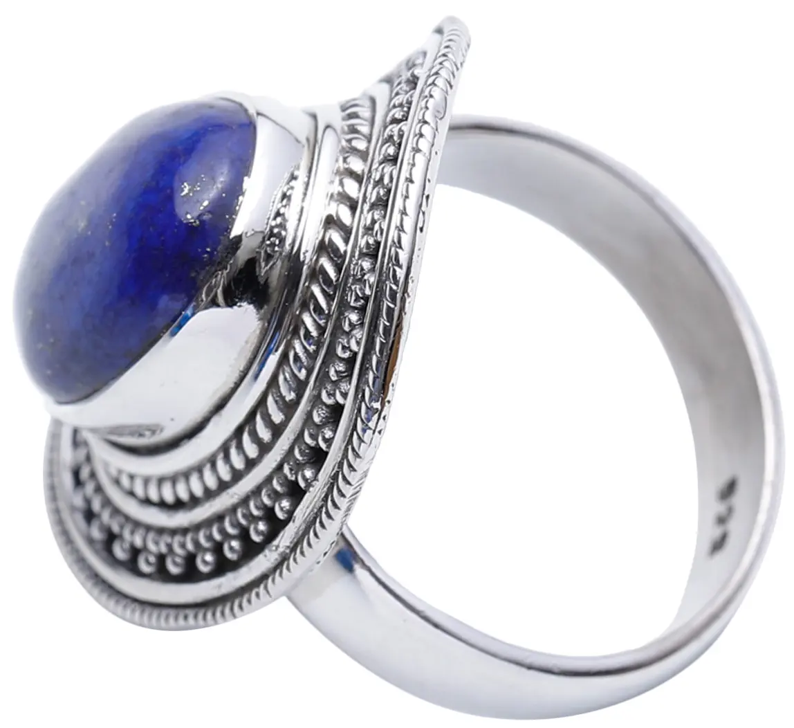 Wearing this ring is akin to wearing a piece of the night sky itself, captured in the mystical blue depths of lapis lazuli and set within the refined elegance of silver.
