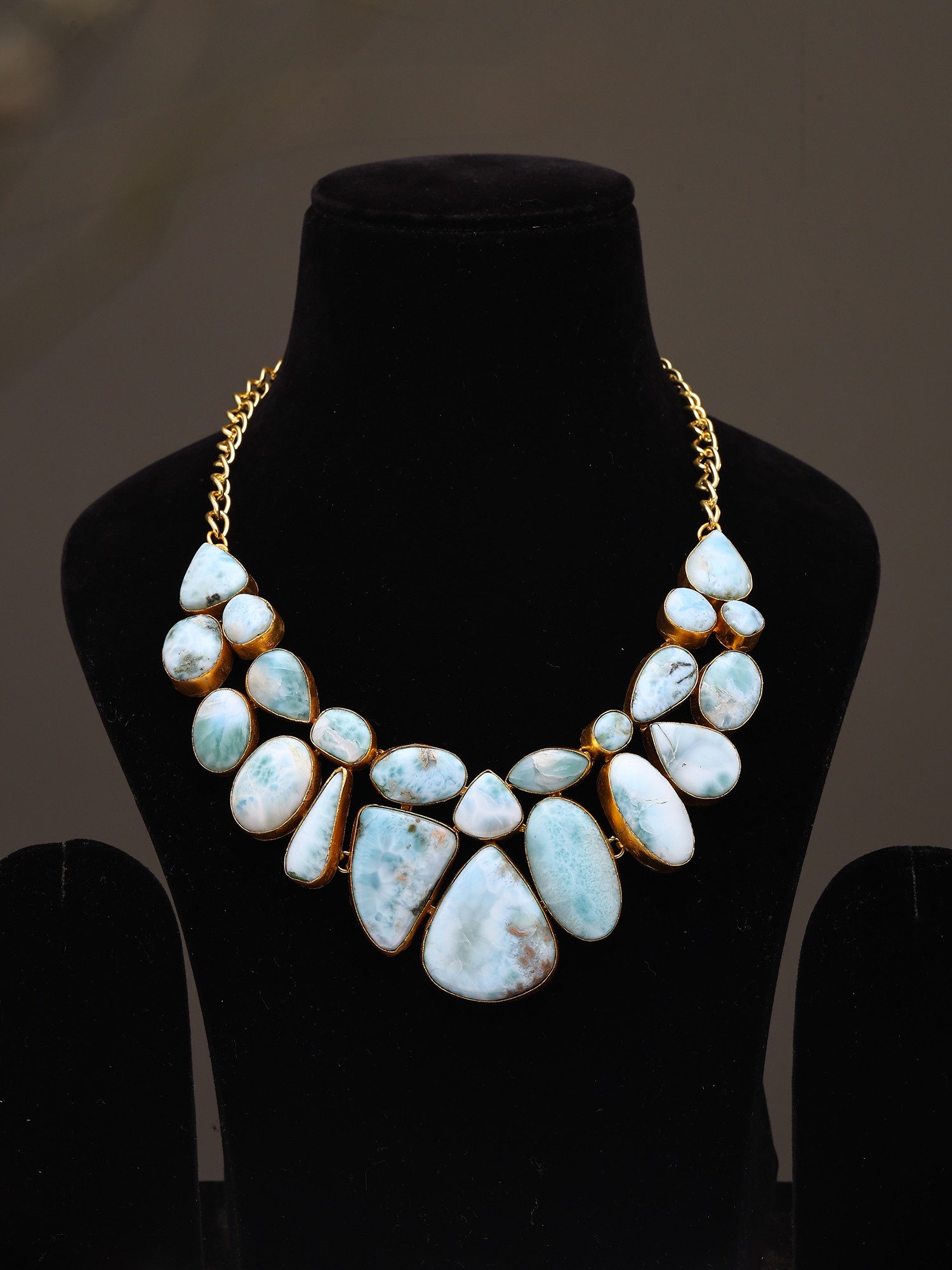 Larimar Stone Cluster Statement Necklace