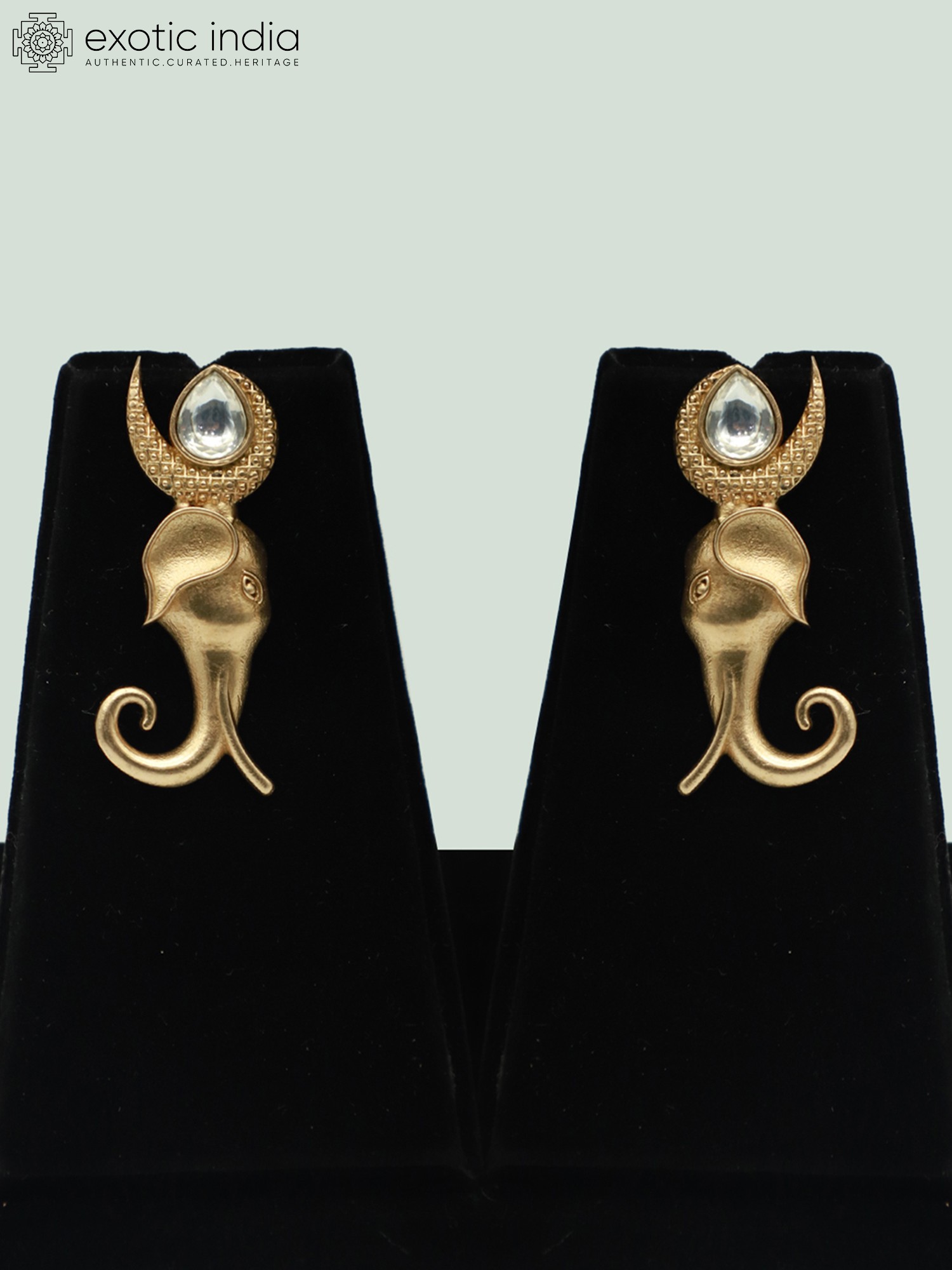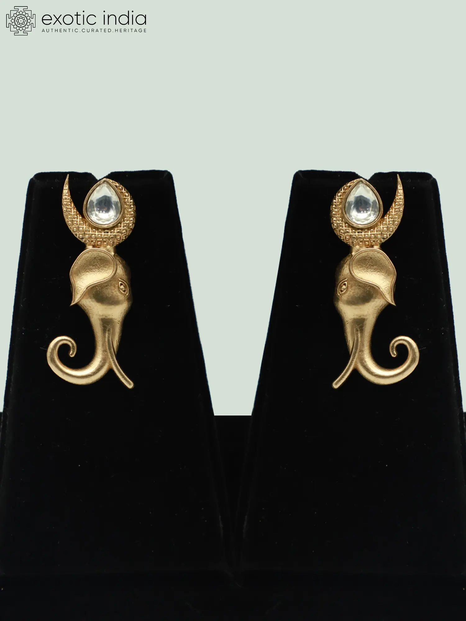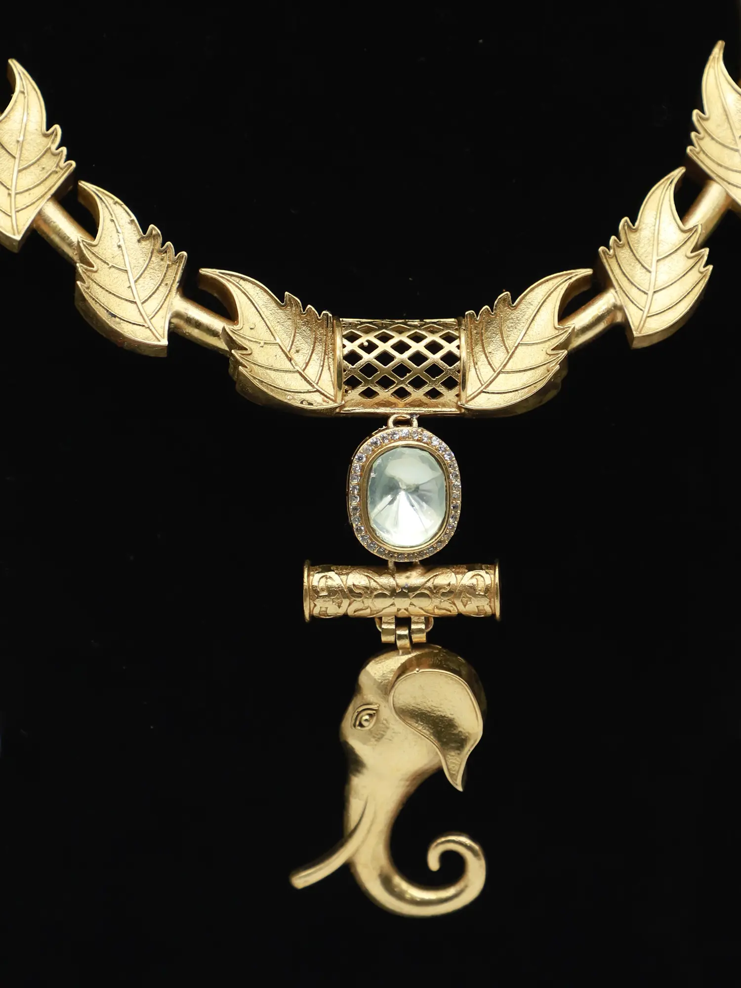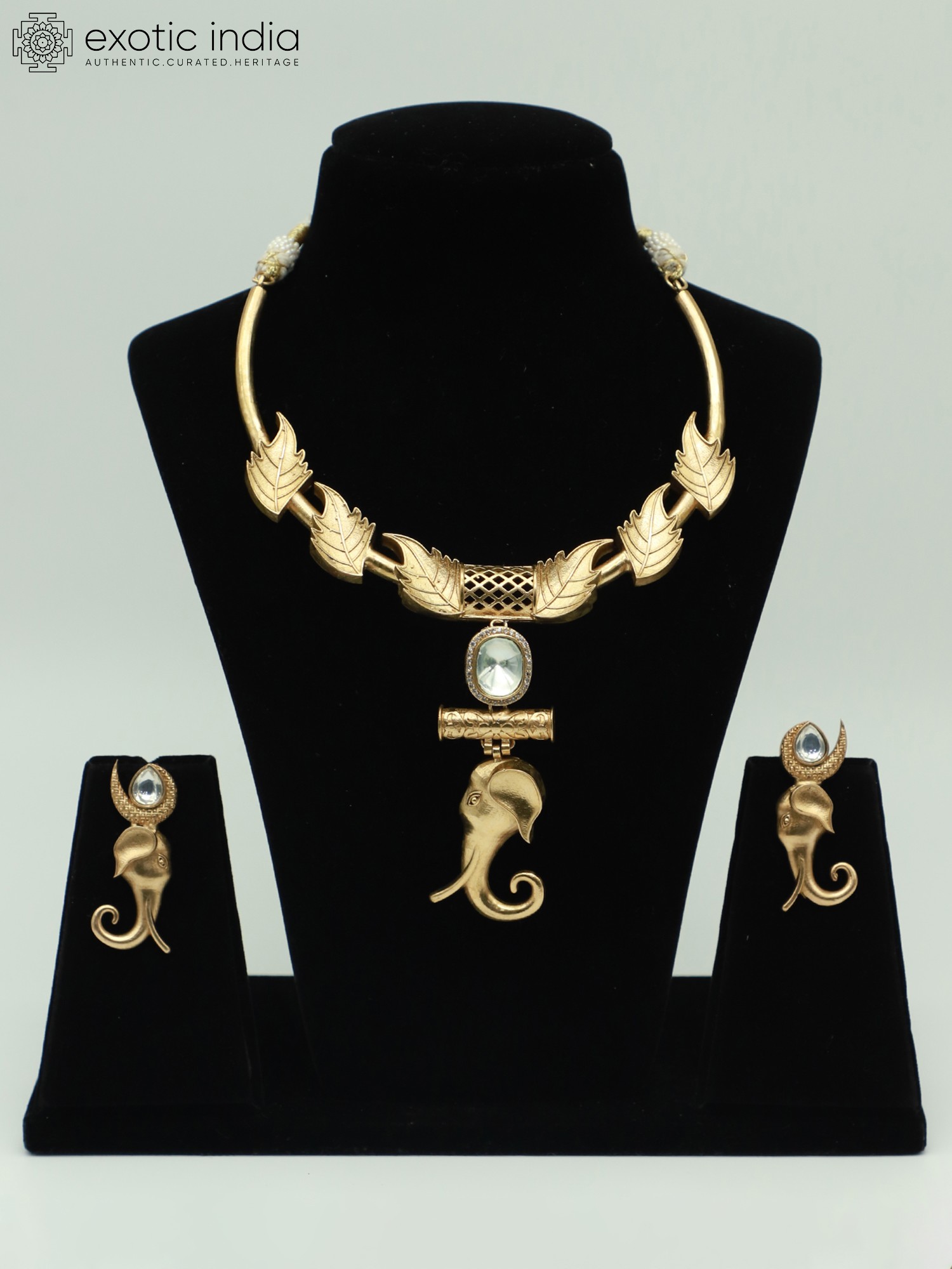 Gold-Tone Stone Studded Elegant American Diamond Necklace Set With Earrings