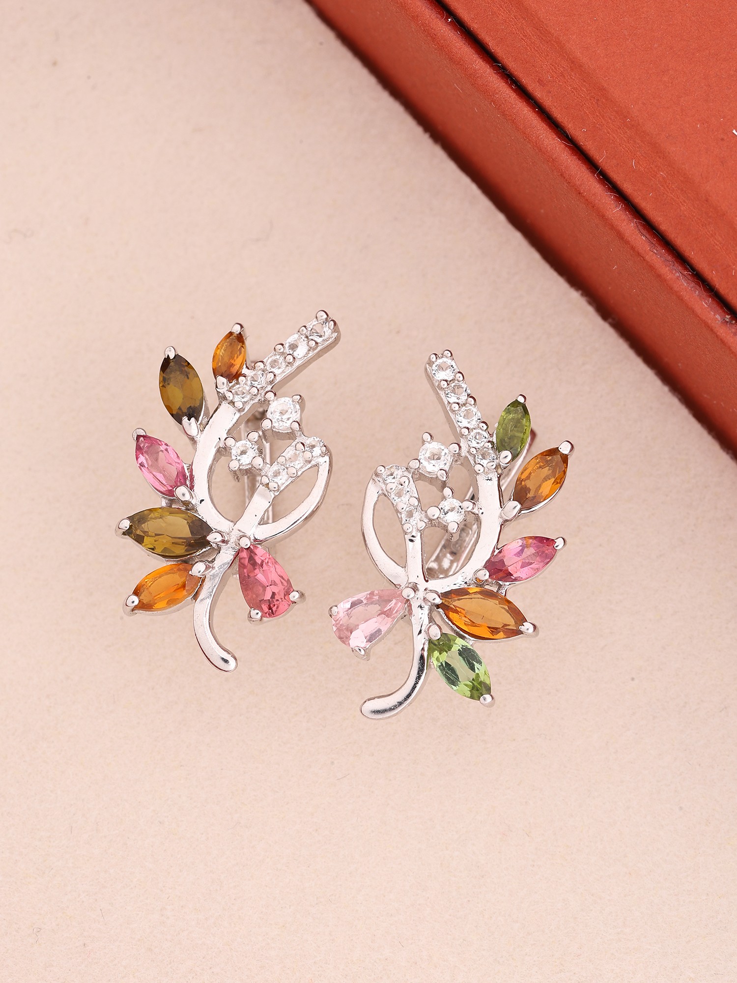 Tourmaline Floral Sterling Silver Stud Earrings - Multi-Color