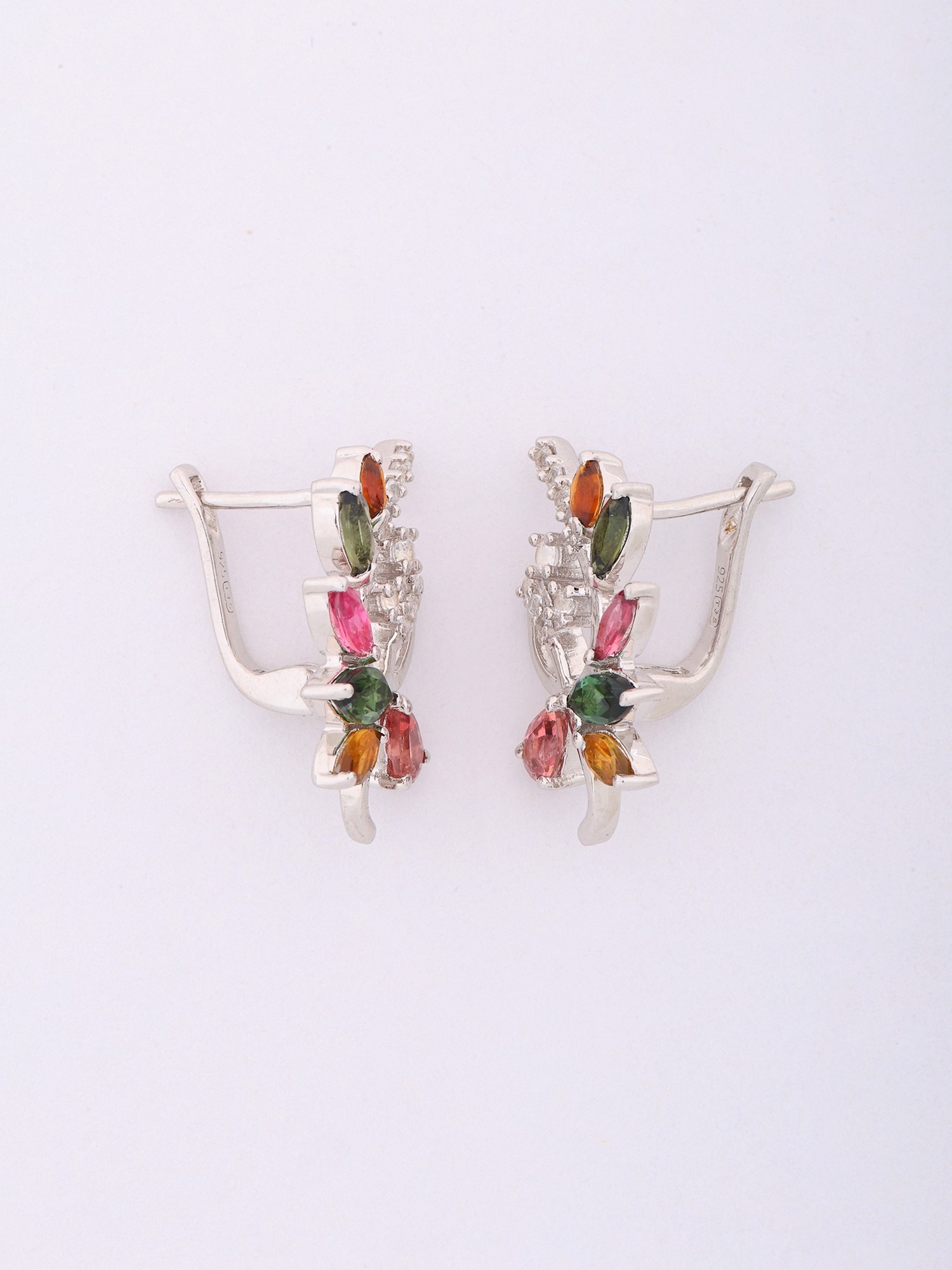 Multicoloured Tourmaline Sterling Silver Earrings with Gemstone Accents