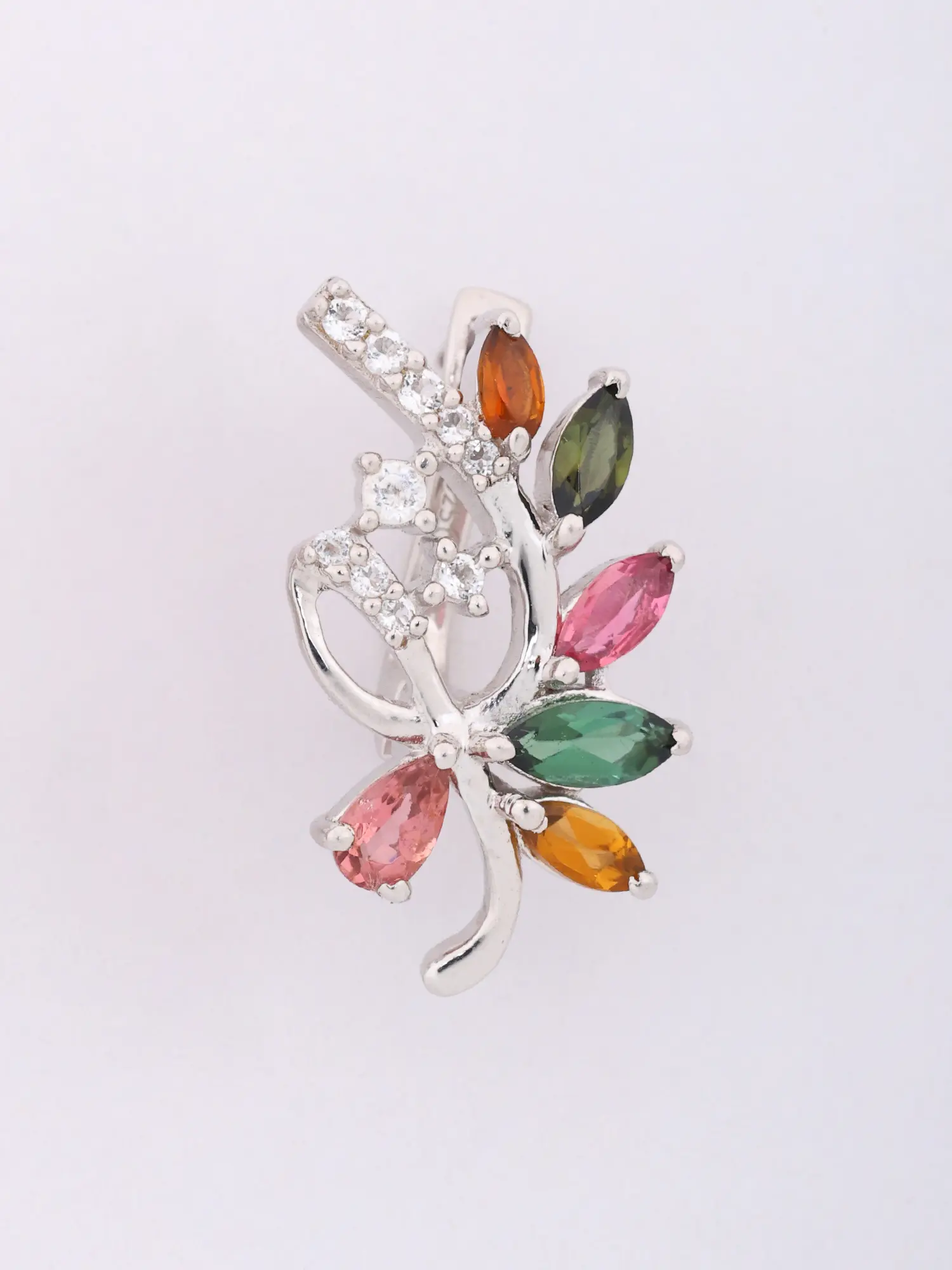 The true magic unfolds with the vibrant scattering of marquise-cut gemstones, each one carefully selected for its distinct color and captivating brilliance. You'll discover warm citrine oranges, soft tourmaline pinks, and verdant peridot greens, interspersed with the clear sparkle of accent stones. This harmonious blend of colors is artfully arranged to mimic the joyful diversity of a sun-drenched meadow, catching the light with every subtle movement. The overall height of these earrings measures approximately 0.8 inches, with a width of 0.45 inches, offering a refined presence that is neither overwhelming nor understated.