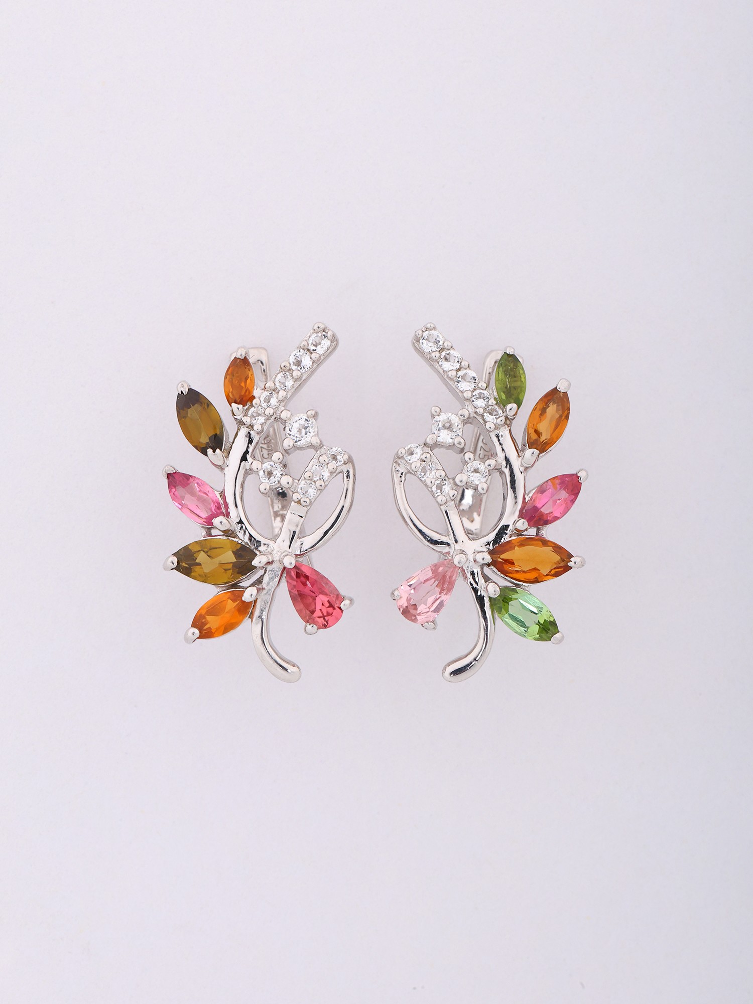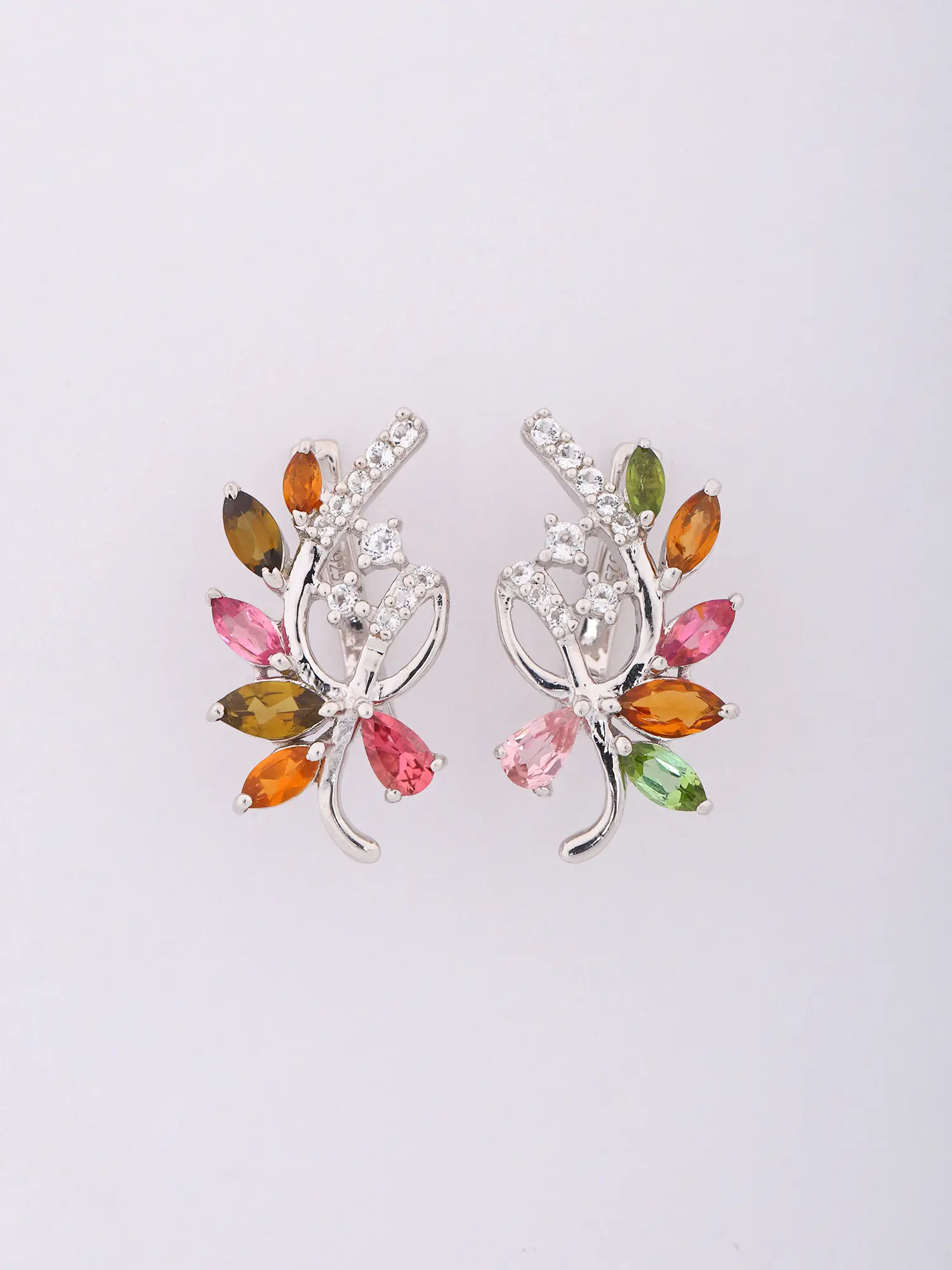 Sterling Silver Stud Earrings with Multi-Color Tourmaline Floral Accents