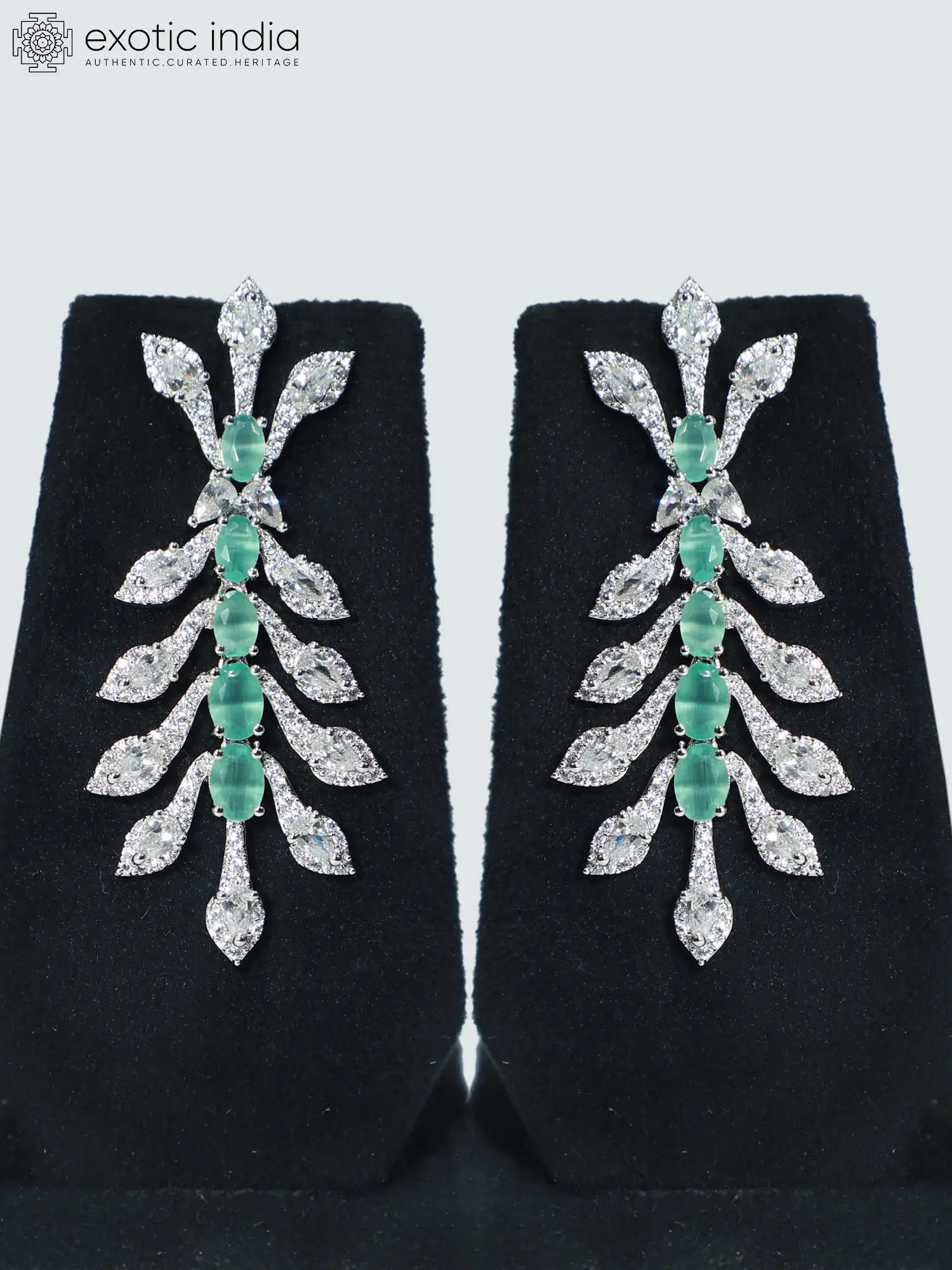 Exquisite Silver Tone Leaf Design American Diamond Necklace Set With Earrings