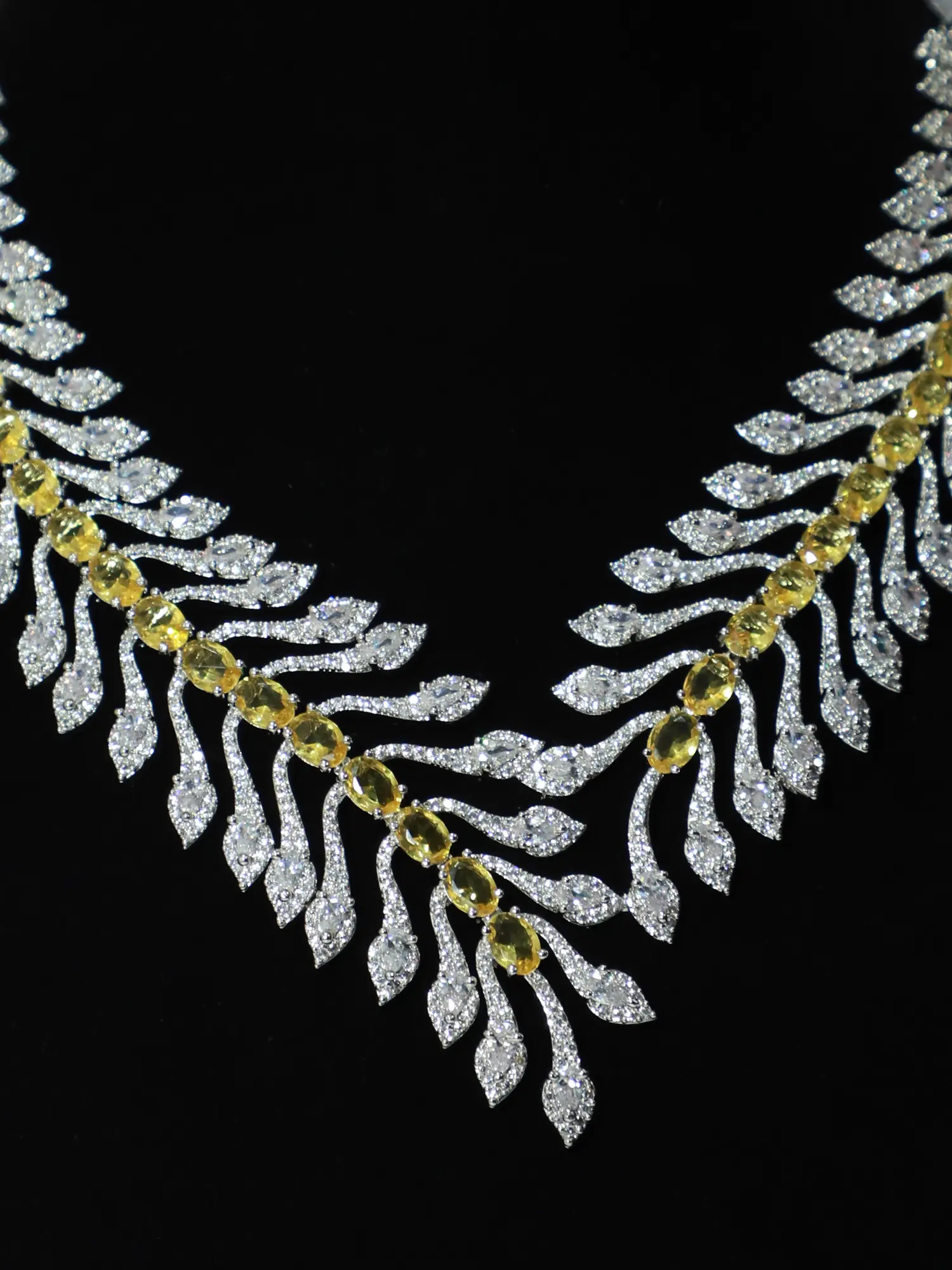 Stunning Floral Leaf Design Stone Studded American Diamond Necklace Set With Earrings
