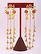 The striking contrast between the warm golden brass and the rich red stones creates an eye-catching display of color and texture. Measuring approximately 7.5 inches in height and 1.8 inches in width, they possess a captivating presence without feeling ostentatious. The intricate detailing of the ghungroo, with their tiny, resonant bells, adds a dynamic and melodic dimension to your look, catching the light and drawing admiring glances.