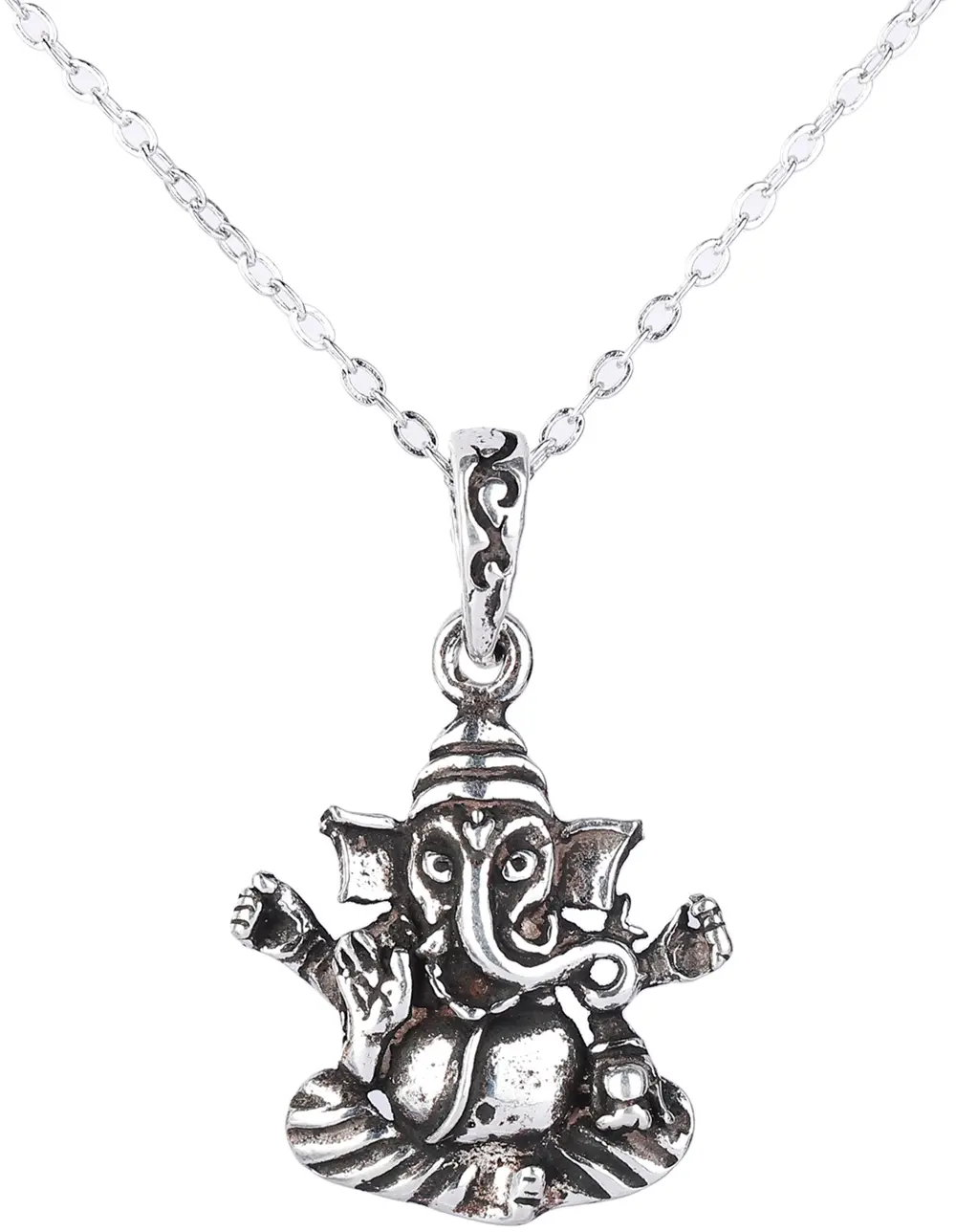 Each glance at this pendant piece instills a feeling of calm and empowerment, while the sterling silver artistry promises long-lasting beauty. This work of art captures the enchantment of the beloved deity savouring his favourite treat, the Modak. It signifies wisdom, prosperity, and the remover of obstacles, encapsulating the essence of Lord Ganesha’s benevolence. Wearing this sacred adornment bestows blessings of intellect, abundance, and the courage to overcome hurdles on life’s journey.