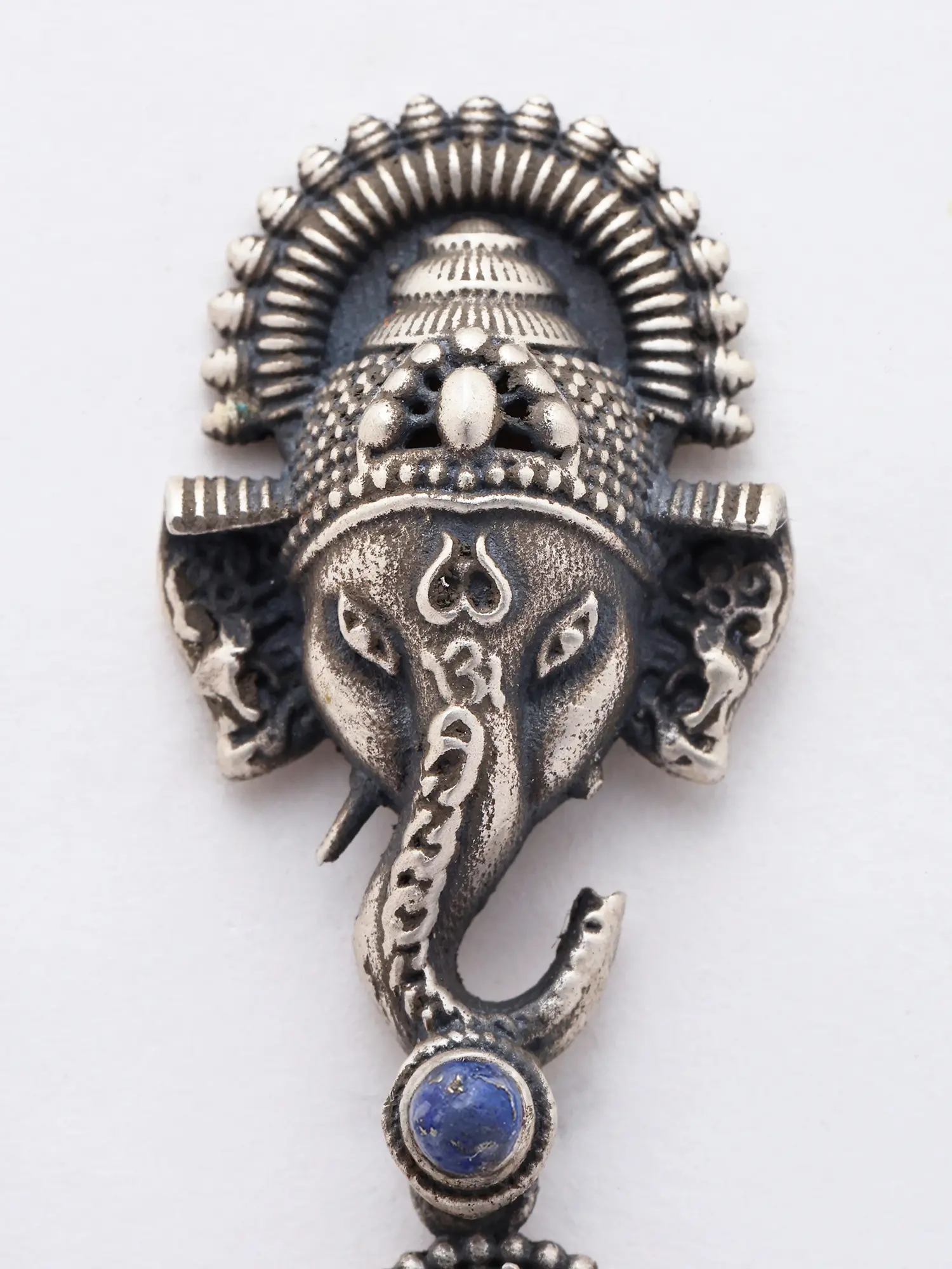 These earrings are fashioned from high-quality sterling silver, known for its durability and timeless appeal. The oxidized finish lends them a vintage charm, highlighting the intricate details and giving them a sophisticated, earthy feel. This intentional patina adds depth and character, making each pair feel like a cherished heirloom. The design is both striking and comfortable, intended to be worn and admired for years to come. They are designed to sway gently with your movements, catching the light and drawing attention to their exceptional craftsmanship. Elevate your jewelry collection with these divine Lord Ganesha earrings, a perfect blend of spiritual reverence and refined style.