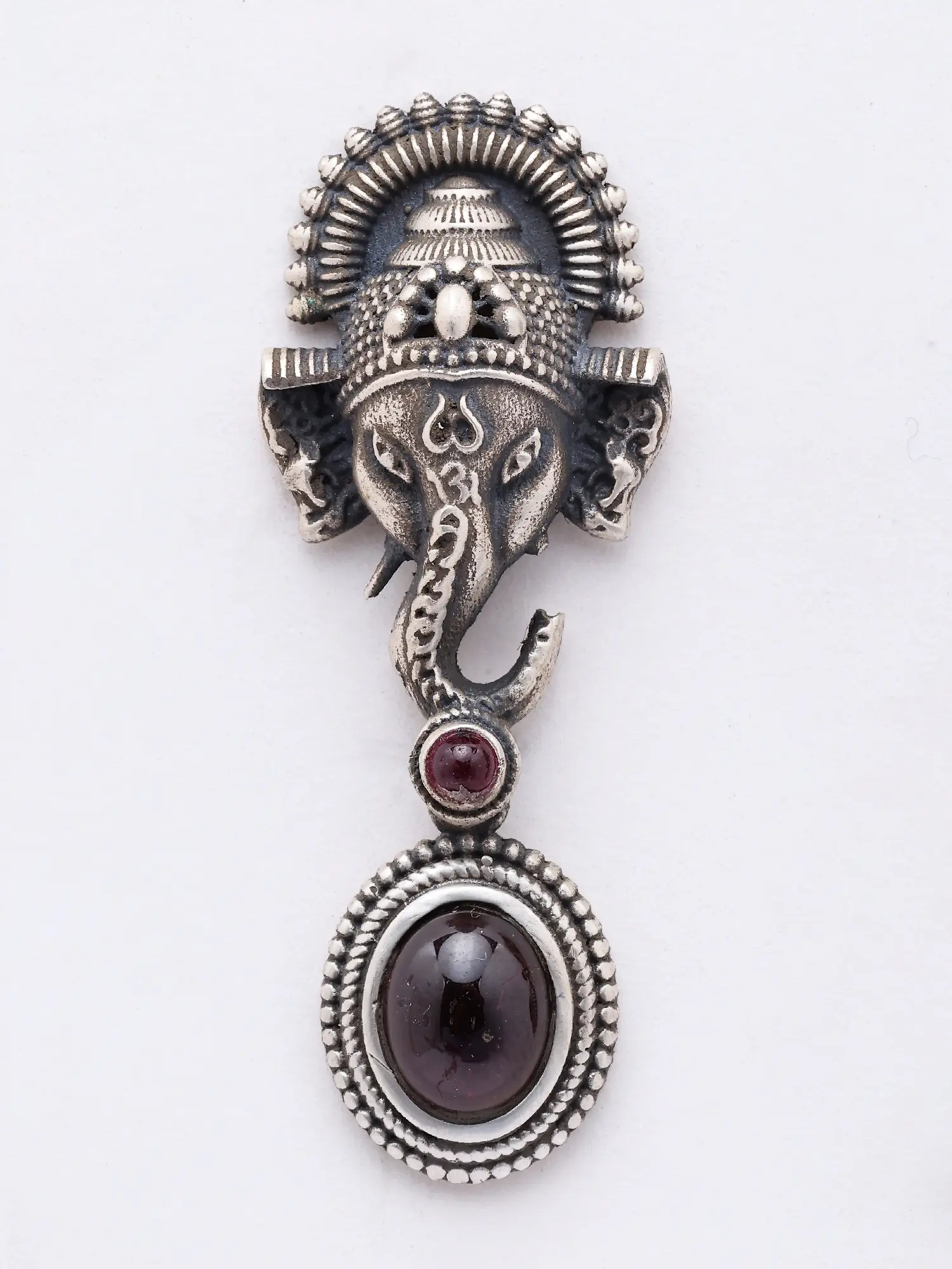 Complementing the divine imagery, a captivating amethyst gemstone dangles gracefully from each earring. The deep, regal purple of the amethyst adds a touch of mystique and elegance, creating a beautiful contrast with the oxidized silver. The gemstone is expertly set within a decorative bezel, further enhancing the overall aesthetic. This thoughtful combination of divine symbolism and precious stone makes these earrings a truly unique and meaningful accessory. Whether you're seeking to infuse your everyday style with spiritual significance or looking for a distinctive piece for a special occasion, these Ganesha earrings are sure to make a statement.