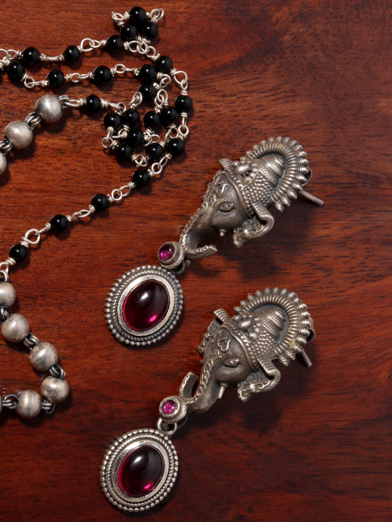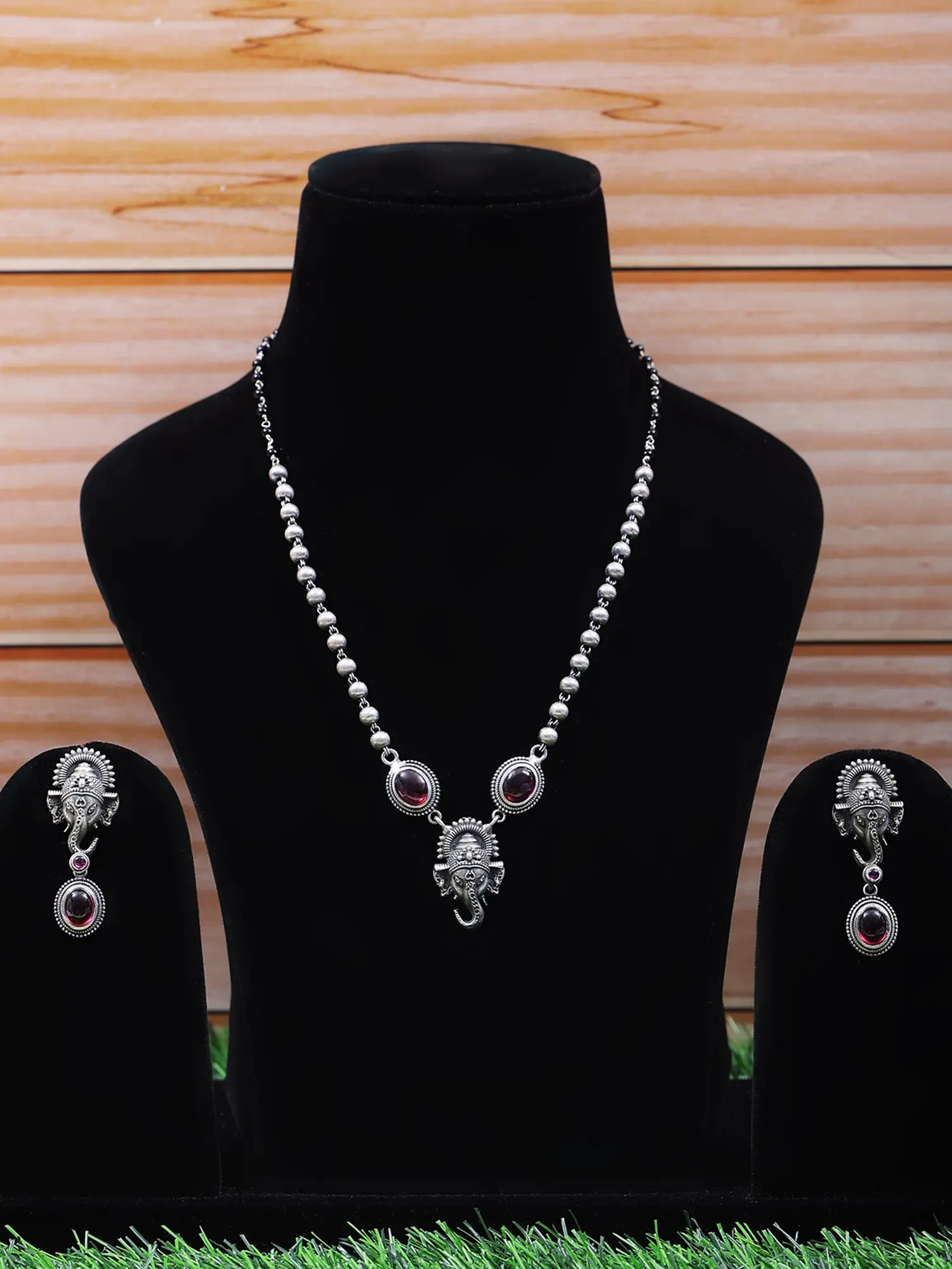 The Lord Ganesha Pendant and Earring Set is a magnificent combination of devotion and style. Sincerely crafted, the pendant honors Lord Ganesha, a venerated Hindu deity who represents wisdom and the elimination of barriers. The pendant's design is complemented by the matching earrings, which together make a beautiful combination. This set, which is made of sterling silver or other materials, symbolizes a holy connection in addition to adding a little cultural meaning. Wear it as a blessing, a lovely embellishment that goes beyond fashion and tradition and has spiritual meaning.