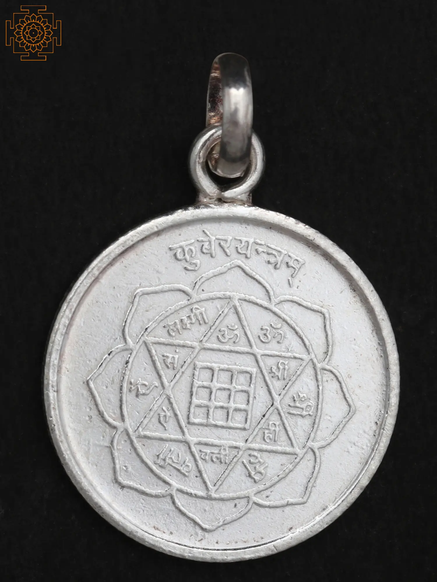 It is believed that employing a Kubera Yantra helps the believer invoke the God of wealth, Lord Kubera, and get his blessings in the form of a successful career and money. This Lord Kubera pendant with Kubera Yantra on the reverse side is a pendant form of the Kubera Yantra that has been blessed with the image of Lord Kubera on the front side and the back side which touches the skin is blessed with the Kubera Yantra. It is made of silver and allows the bearer to be blessed with the positive effects of the blessings of Lord Kunera as well as the Yantra.