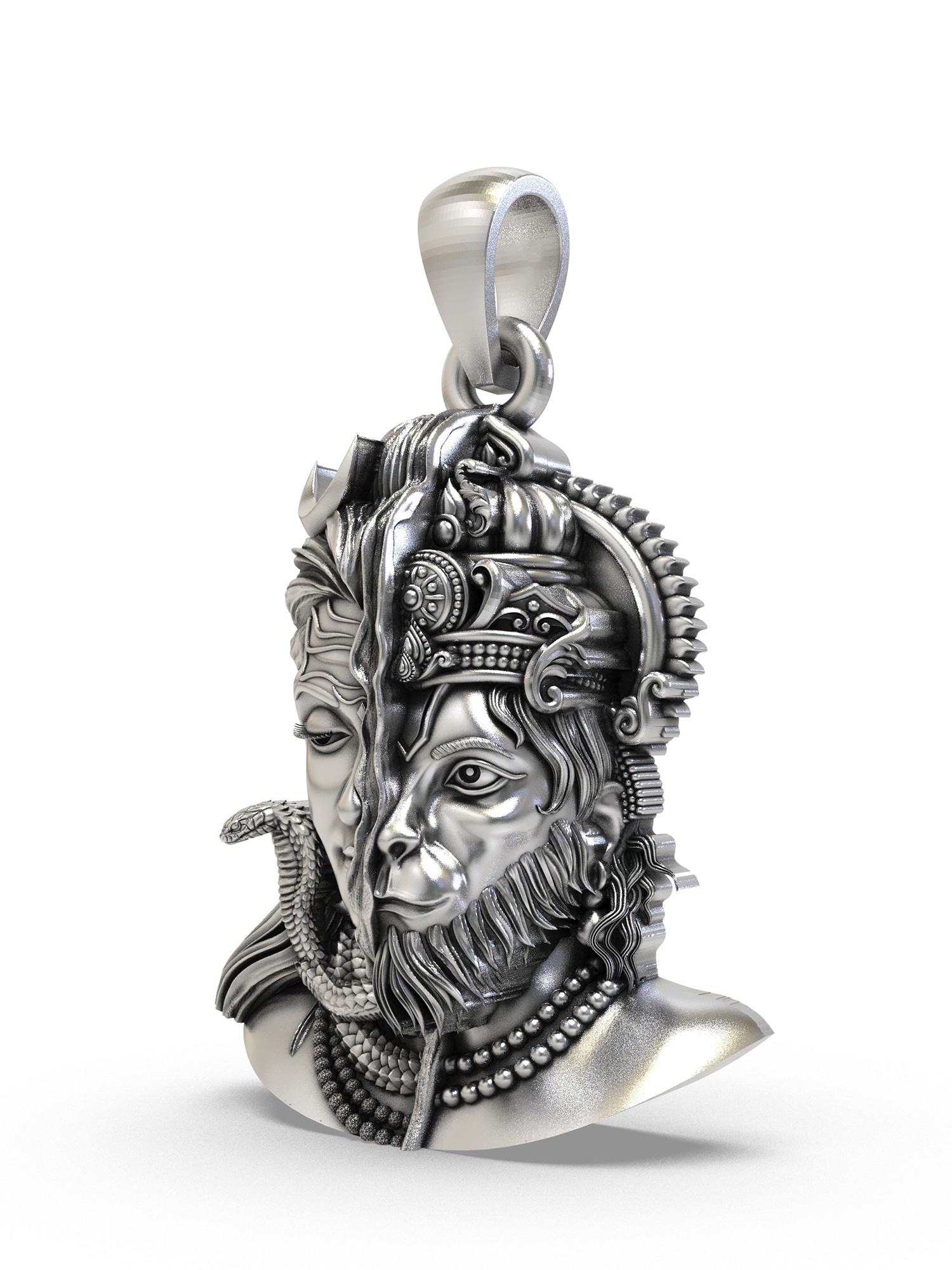 Lord Hanuman Antique Finish Sterling Silver Pendant