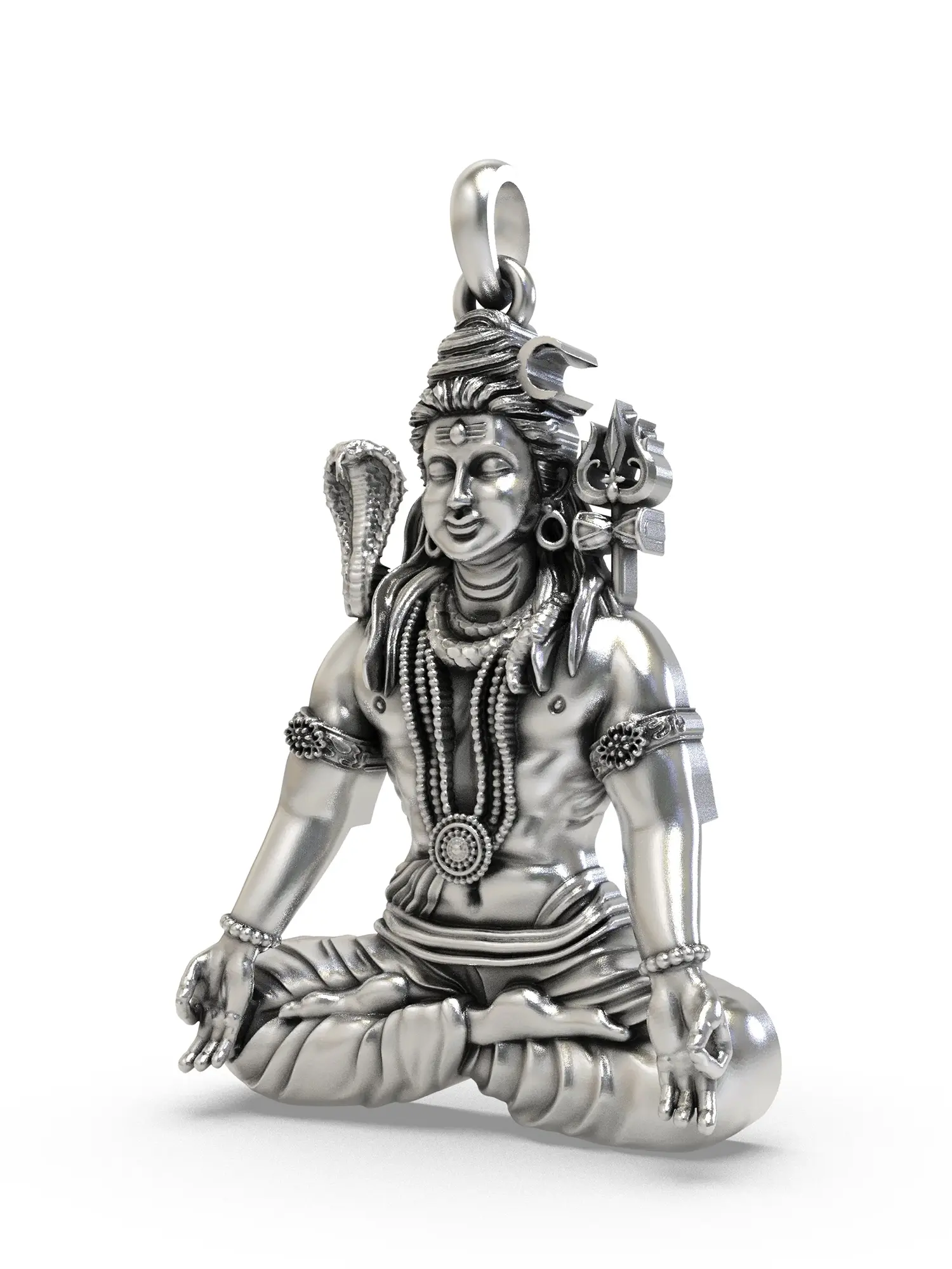 Hindu Deity Lord Shiva Sterling Silver Pendant