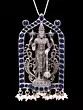 The central depiction of the deity stands tall, rendered with remarkable precision and depth within its protective frame. This frame, a symphony of curving lines, is adorned with a border of vibrant, deep blue stones that draw the eye and complement the silver's subtle sheen. Cascading pearl drops along the lower edge add a touch of delicate femininity and movement, catching the light with every subtle shift. Measuring approximately 2.5 inches in height and 1.3 inches in width, it offers a prominent yet balanced presence, a testament to thoughtful design.