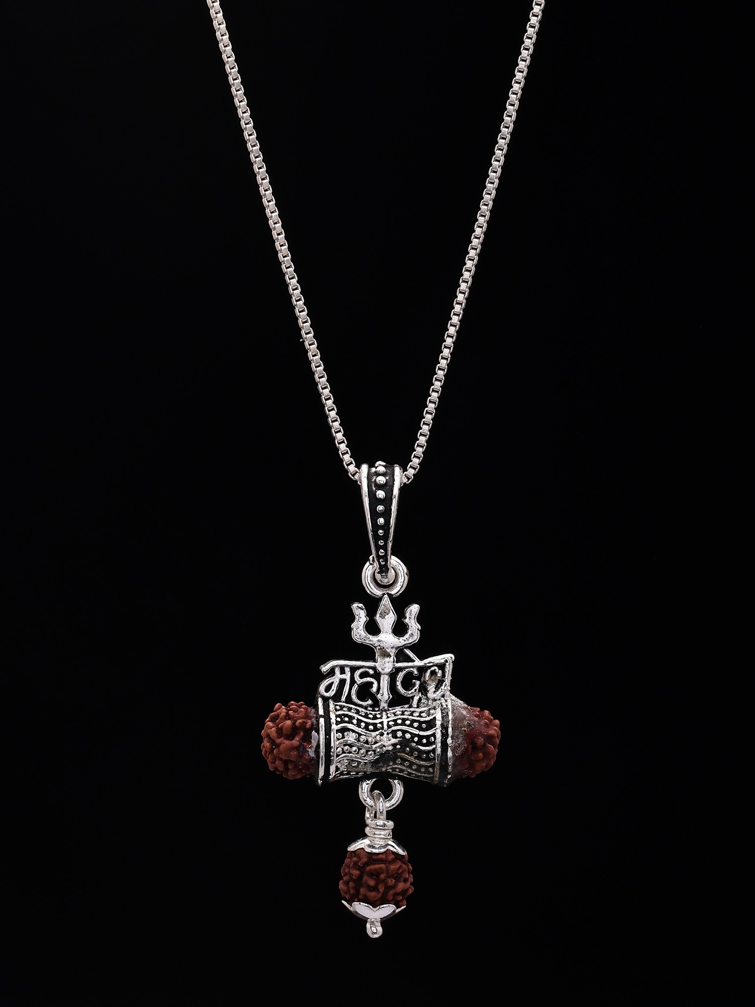 Shivalinga & Crescent Moon Silver Pendant with Rudraksha