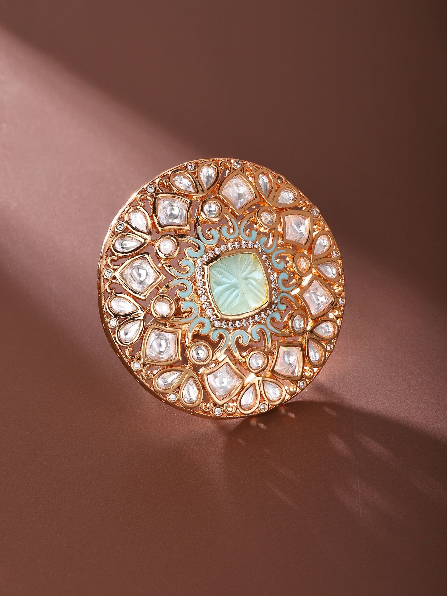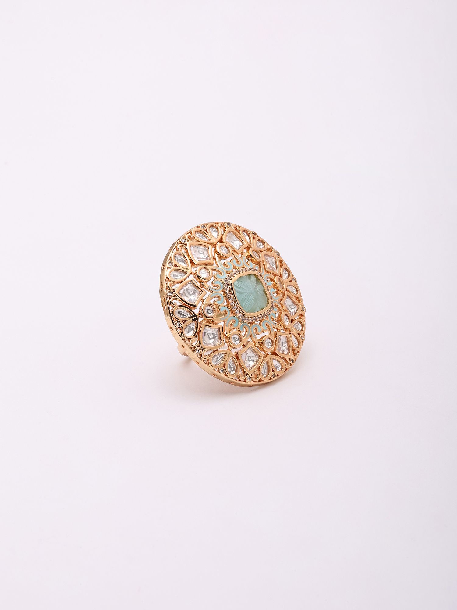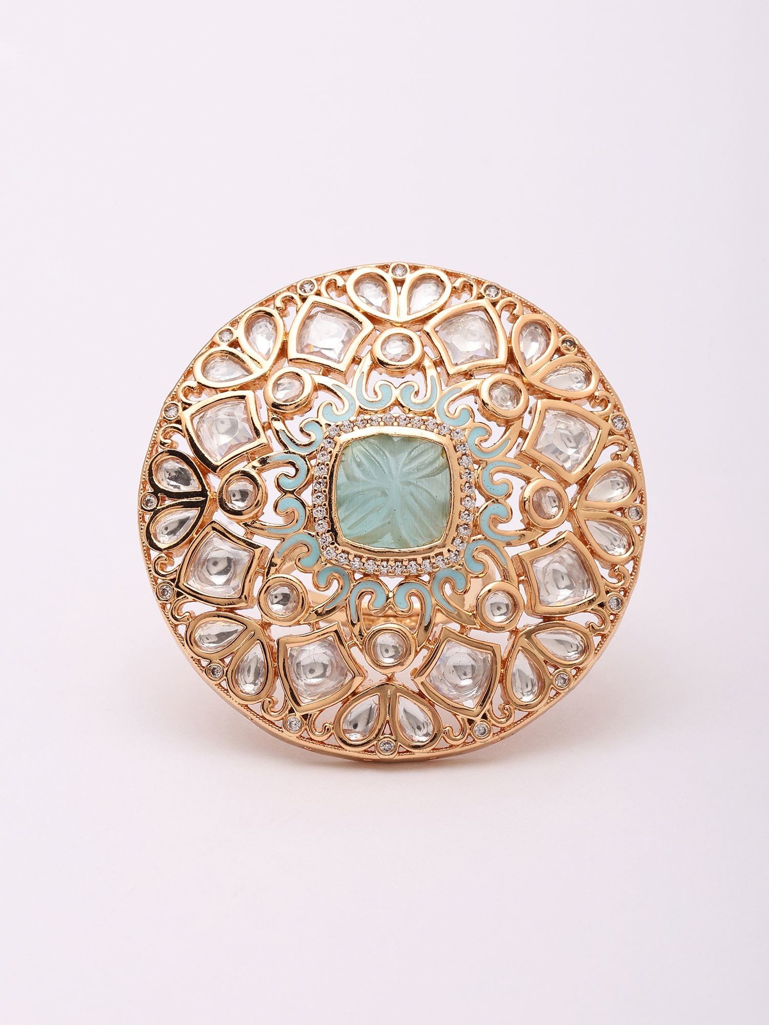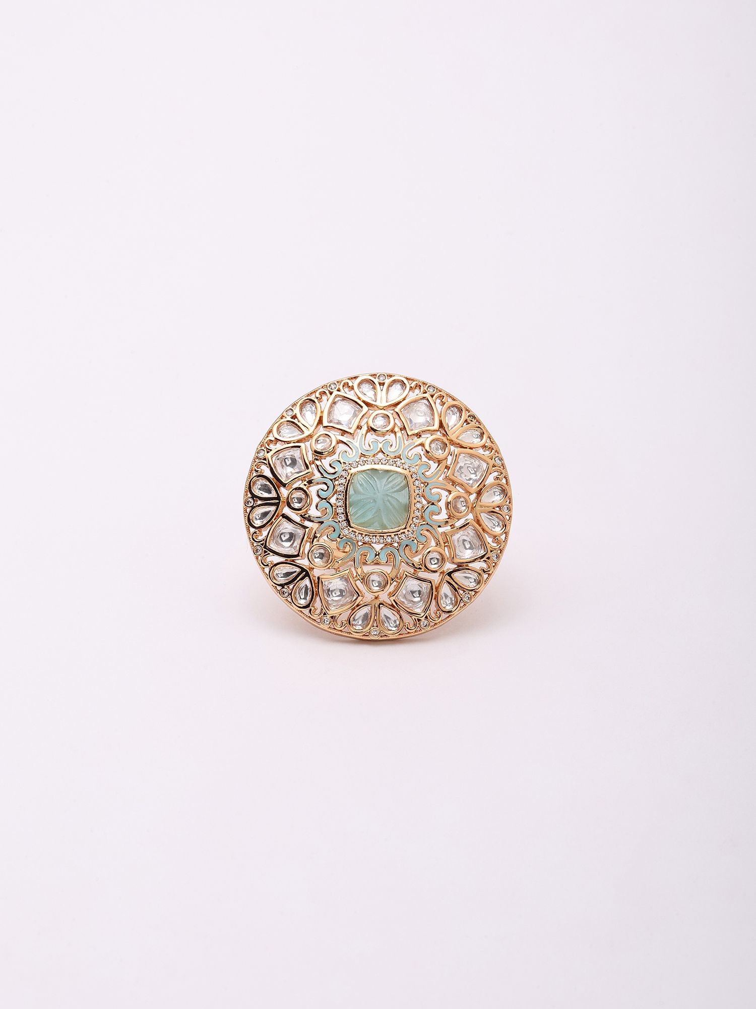 Mandala Design Kundan Ring with Stone Studs (Adjustable)