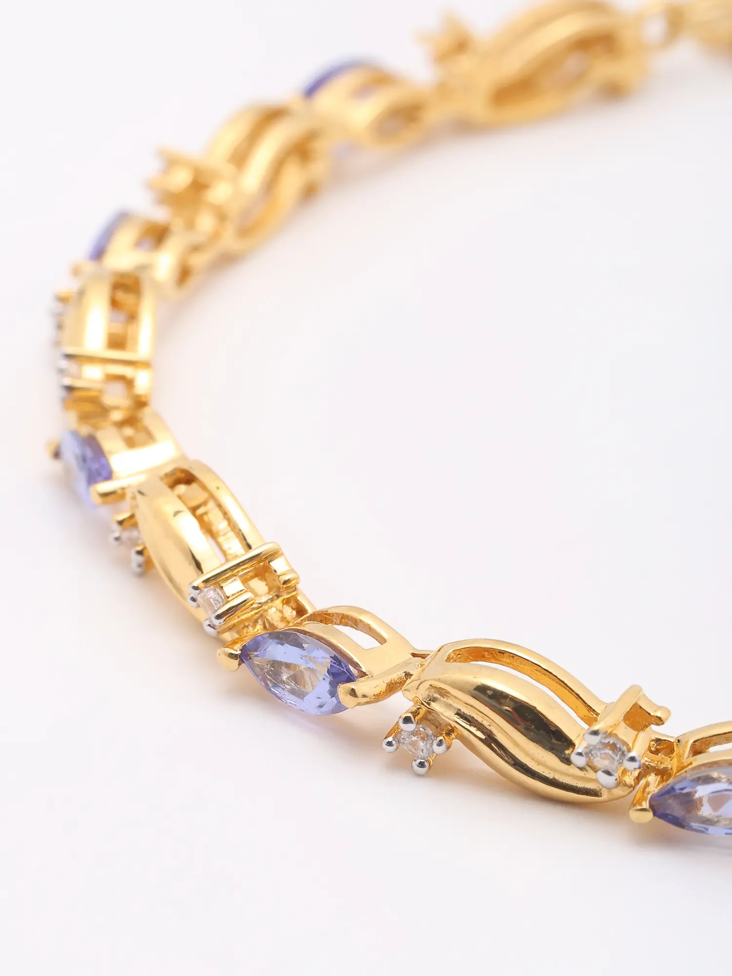 Pear Shape Faceted Blue Sapphire Bracelet with Cubic Zirconia